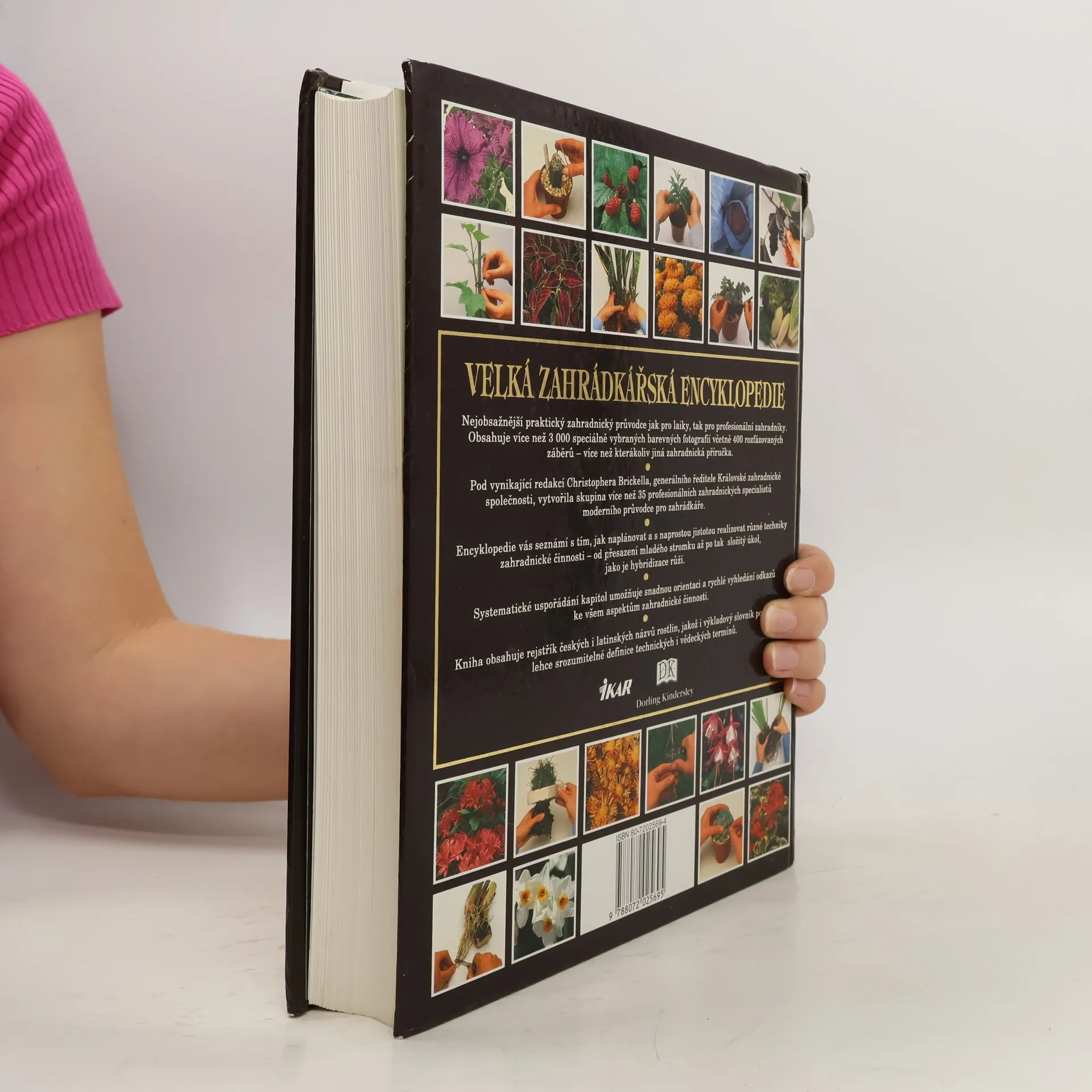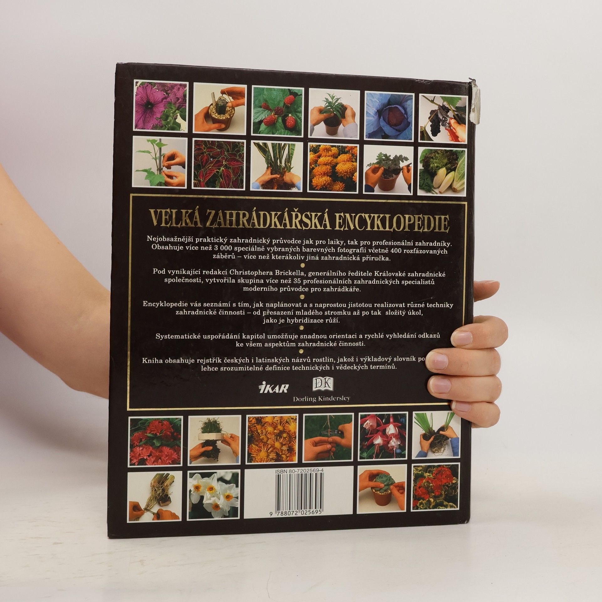 Praktický průvodce zahrádkářskými technikami, navrhováním a údržbou výsadeb i pěstováním květin, okrasných rostlin, ovoce a zeleniny.Nejobsažnější praktický zahradnický průvodce pro laiky i profesionální zahradníky obsahuje více než 3000 barevných fotografií včetně 400 rozfázovaných záběrů. Encyklopedie vás seznámí s tím, jak naplánovat a realizovat různé techniky zahradnické činnosti - od přesazení mladého stromku až třeba po složitou hybridizaci růží. Systematické uspořádání kapitol usnadňuje orientaci a rychlé vyhledávání odkazů ke všem aspektům zahradnické činnosti. Kniha obsahuje rejstřík českých i latinských názvů rostlin, jakož i výkladových slovník poskytující srozumitelné definice technických a vědeckých termínů. Chybné ISBN 80-7202569-4, správné ISBN je 80-7202-569-4. (zdroj: Databáze Národní knihovny ČR)... celý text