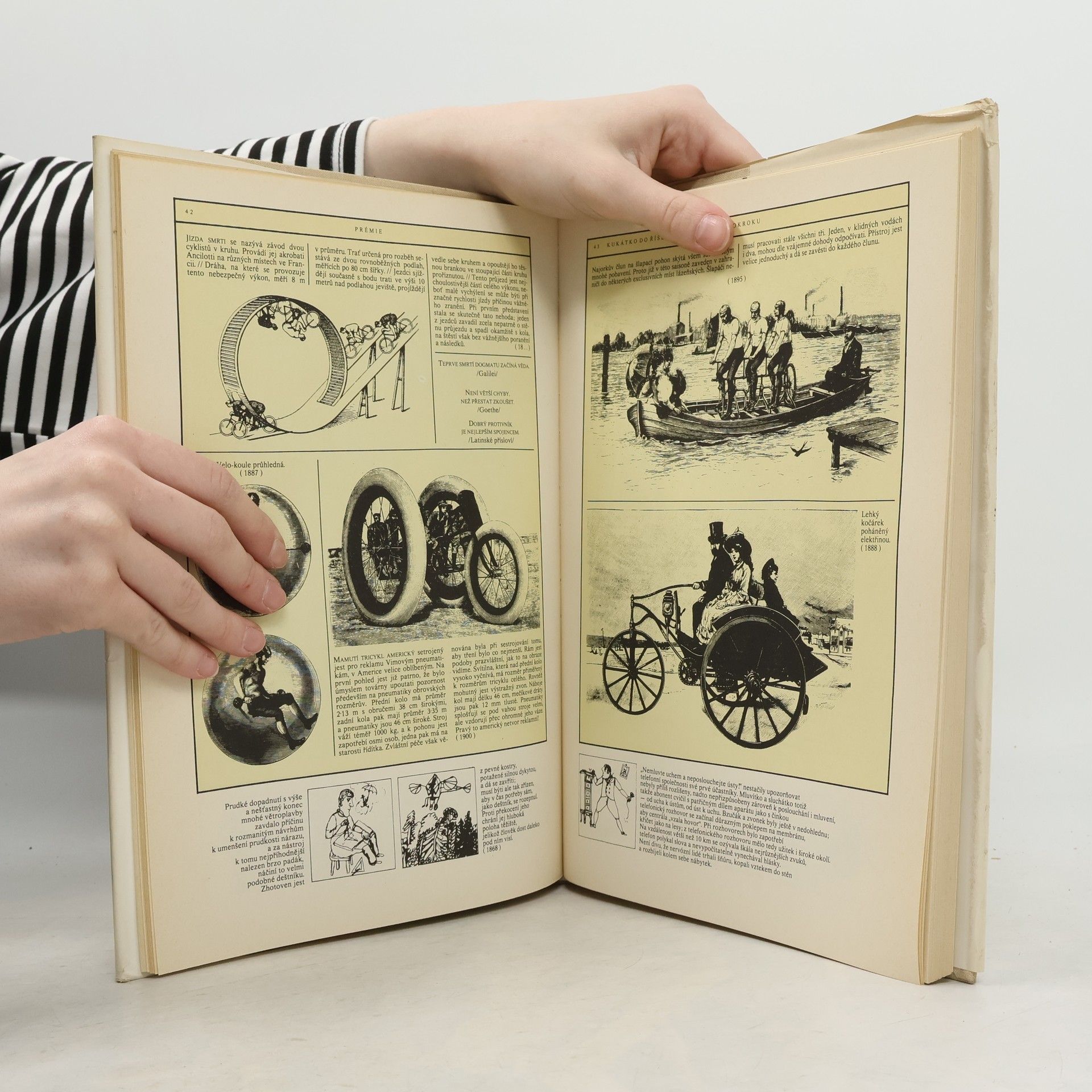 Kukátko do říše vědy, techniky a pokroku. Členská knižnice nakl. Svoboda. Zábavná členska prémie.Z časopisů, vycházejících v 2. polovině 19. století a před první světovou válkou, vybrali autoři různé inzeráty a informace o kuriiózních vynálezech s originálními obrázky. Kromě důmyslných zařízení k usnadnění práce iběžnéhoživota, zdravotnických přístrojů, nových dopravních prostředků apod. upozorňují i na objevy, které přispěly ke skutečnému pokroku.