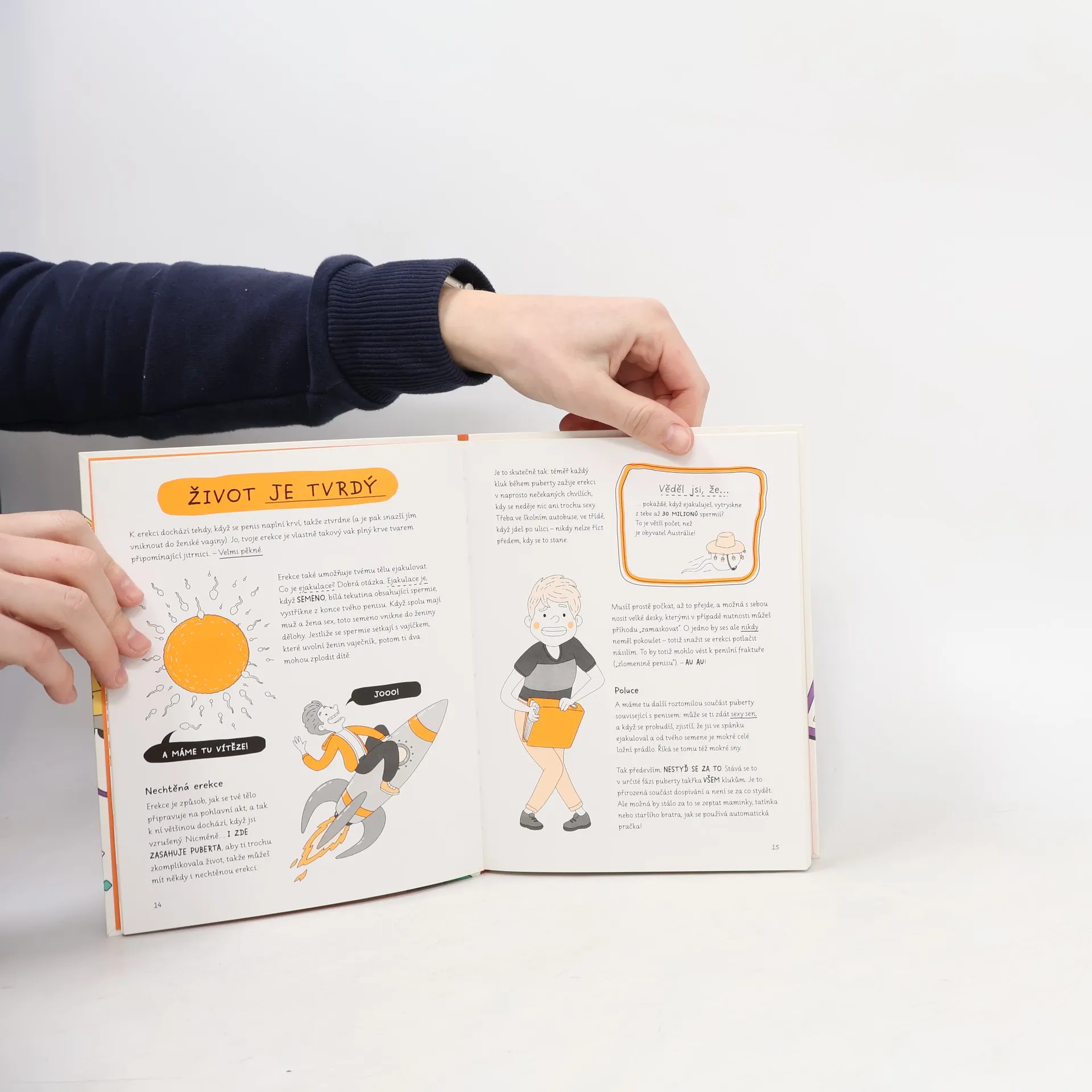 Všude po těle ti rostou chlupy, na tvůj obličej zaútočilo akné a holky najednou nejsou tak otravné, jako bývaly… Co se to, sakra, děje? Upřímně – nastal čas postavit se pravdě čelem a řadu věcí si nechat vysvětlit. Dospívání je jako jízda na divoké horské dráze, ale může být o dost klidnější, když víš, co máš čekat. Poradíme ti se vším, co potřebuješ vědět: radami jak se holit počínaje a vztahy mezi kluky a holkami konče. Uvidíš, že když budeš vědět, která bije, hodíš se do klidu a pubertu bez úhony přežiješ!