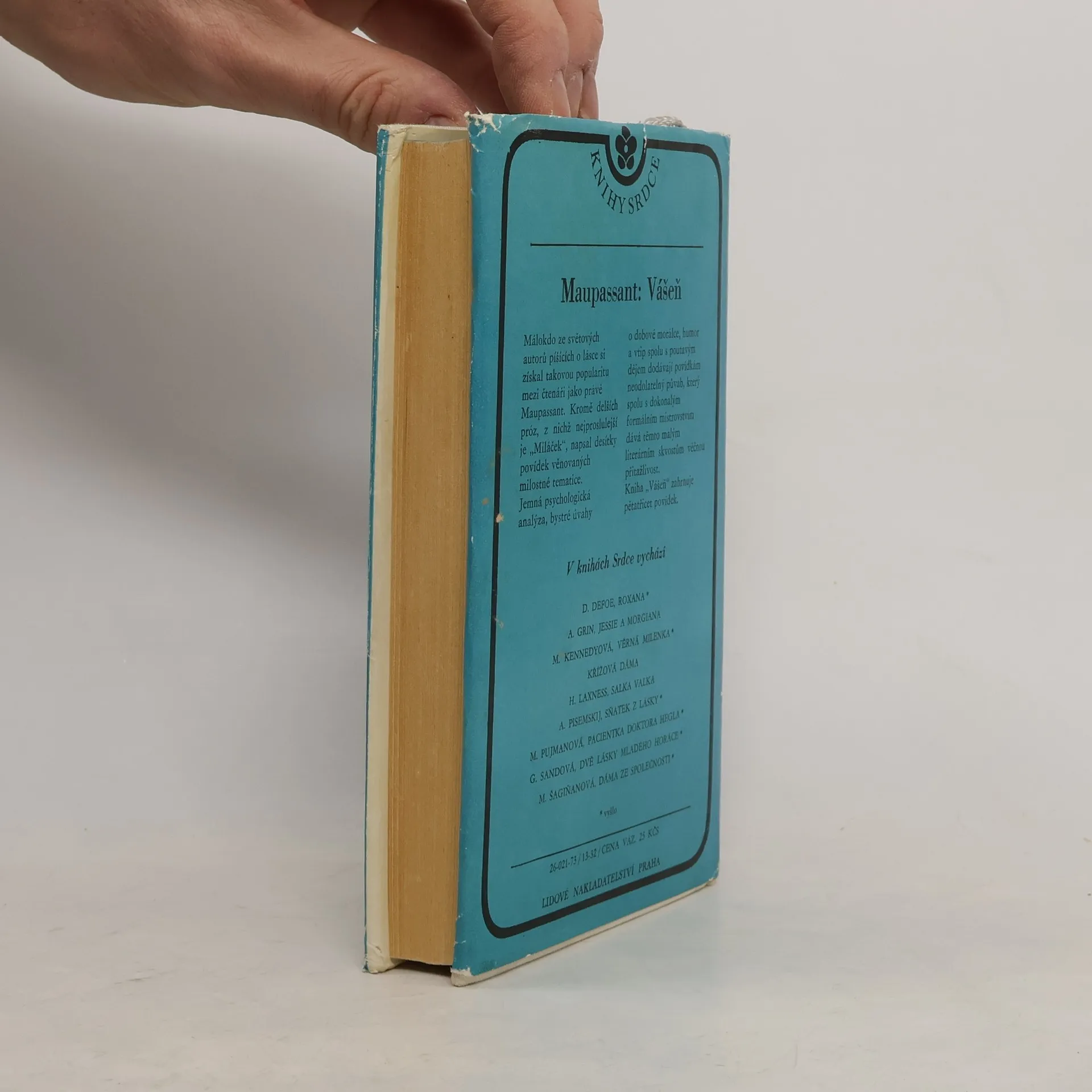 Soubor povídek věnovaných milostné tematice (Vášeň, Vyplétačka, Lůžko 29, Miss Harrietová, Alexandr, Noc u mrtvé, Modelka, Naše dopisy, Závěť, Pan Iokaste, Poustevník, Paní Parisová, Kulhanka, Lítost, Hrobničky, Znamení, Baronka, Pokoj 11, Mrtvá, Neužitečná krása, Otec a syn, Vdova, Měsíční svit, Boitelle, Pan Parent, Misti, Dítě, Šálí, Z cest, Slečna Perla, Babiččiny rady, Rez, Maska, Berta, Muška). Mistrovsky napsané příběhy o lásce vynikají poutavým dějem, přinášejí jemnou psychologickou analýzu postav a vypovídají s humorem a vtipem o dobové morálce. 1. vydání v tomto uspořádání. Na obálce pouze „Vášeň“, na titulní straně „Vášeň a jiné povídky“.