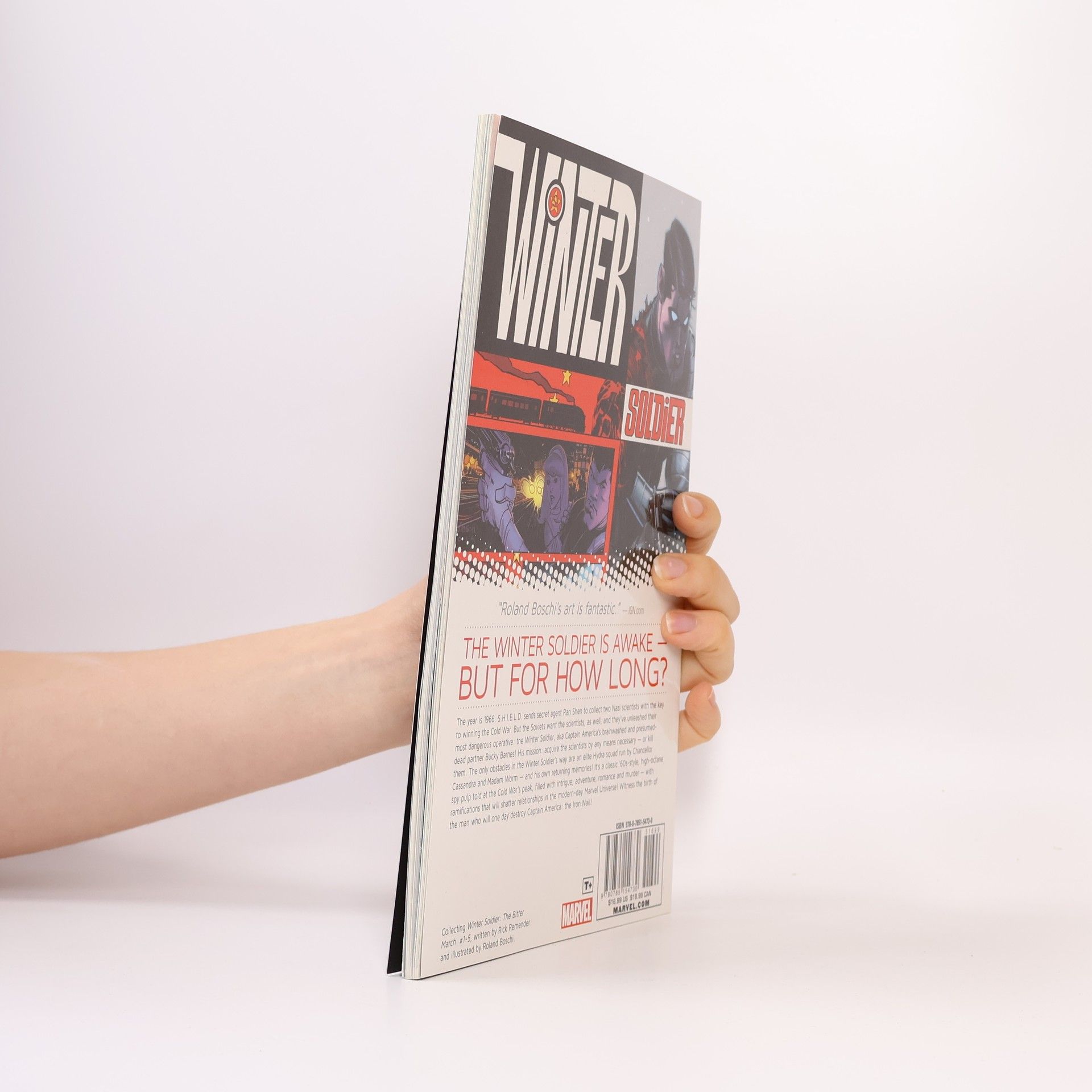 1966: S.H.I.E.L.D. sends secret agent Ran Shen to collect two Nazi scientists with the key to winning the Cold War. But the Soviets want the scientists as well, and have unleashed their most dangerous operative: the Winter Soldier, aka the brainwashed and presumed-dead partner of Captain America - Bucky Barnes! His mission: acquire the scienti sts by any means necessary...or kill them. The only things in the Winter Soldier's way are an elite Hydra squad run by Chancellor Cassandra and Madam Worm...and his own returning memories! COLLECTING: WINTER SOLDIER: THE BITTER MARCH 1-5
