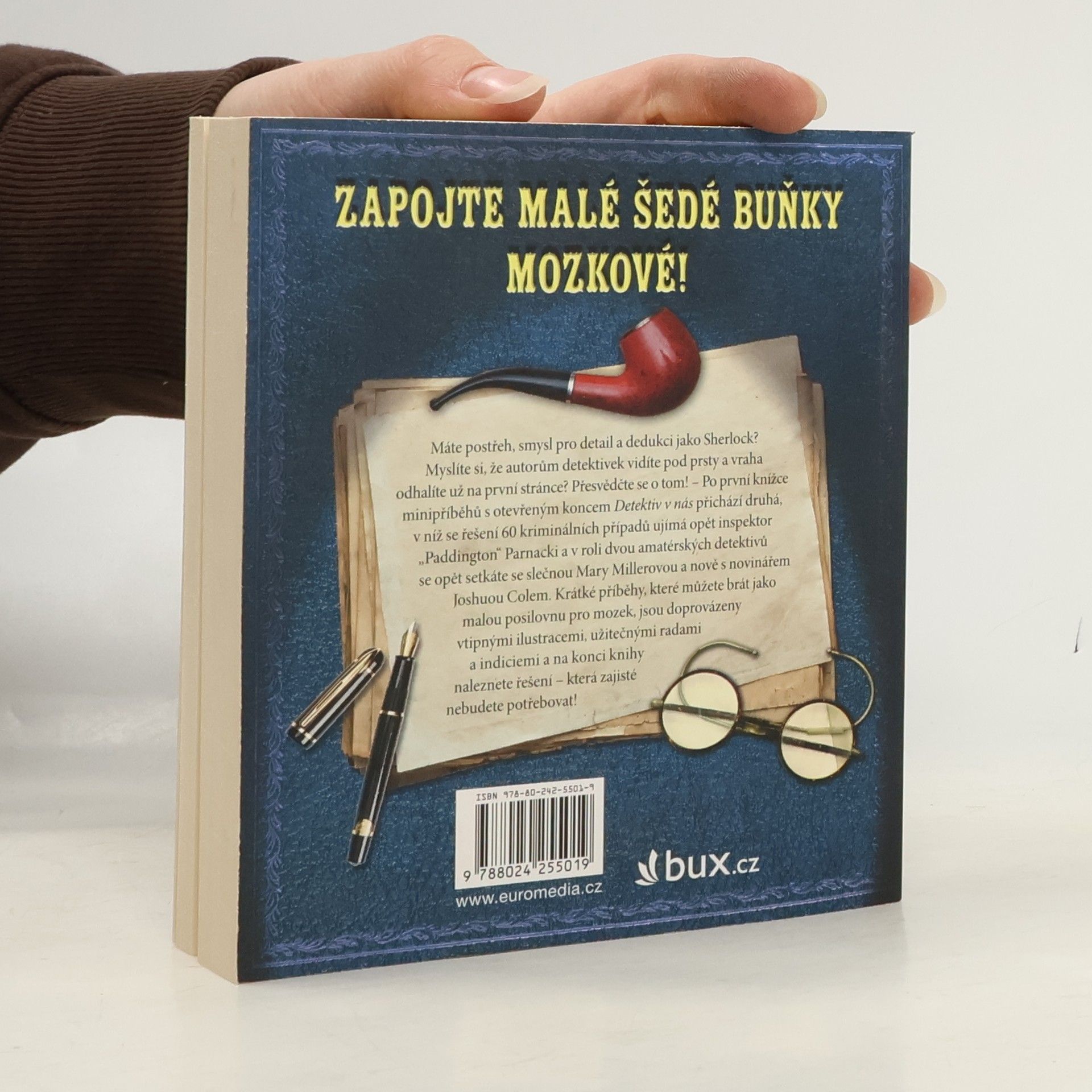 Máte postřeh, smysl pro detail a dedukci jako Sherlock? Myslíte si, že autorům detektivek vidíte pod prsty a vraha odhalíte už v druhé kapitole? Přesvědčte se o tom! – Po první knížce minipříběhů s otevřeným koncem Detektiv v nás přichází druhá, v níž se řešení 60 kriminálních případů ujímá opět inspektor „Paddington“ Parnacki a v roli dvou amatérských detektivů slečna Mary Millerová a novinář Joshua Cole. Krátké příběhy, které můžete brát jako malou posilovnu pro mozek, jsou doprovázeny vtipnými ilustracemi, užitečnými radami a indiciemi a na konci knihy naleznete řešení – která zajisté nebudete potřebovat!