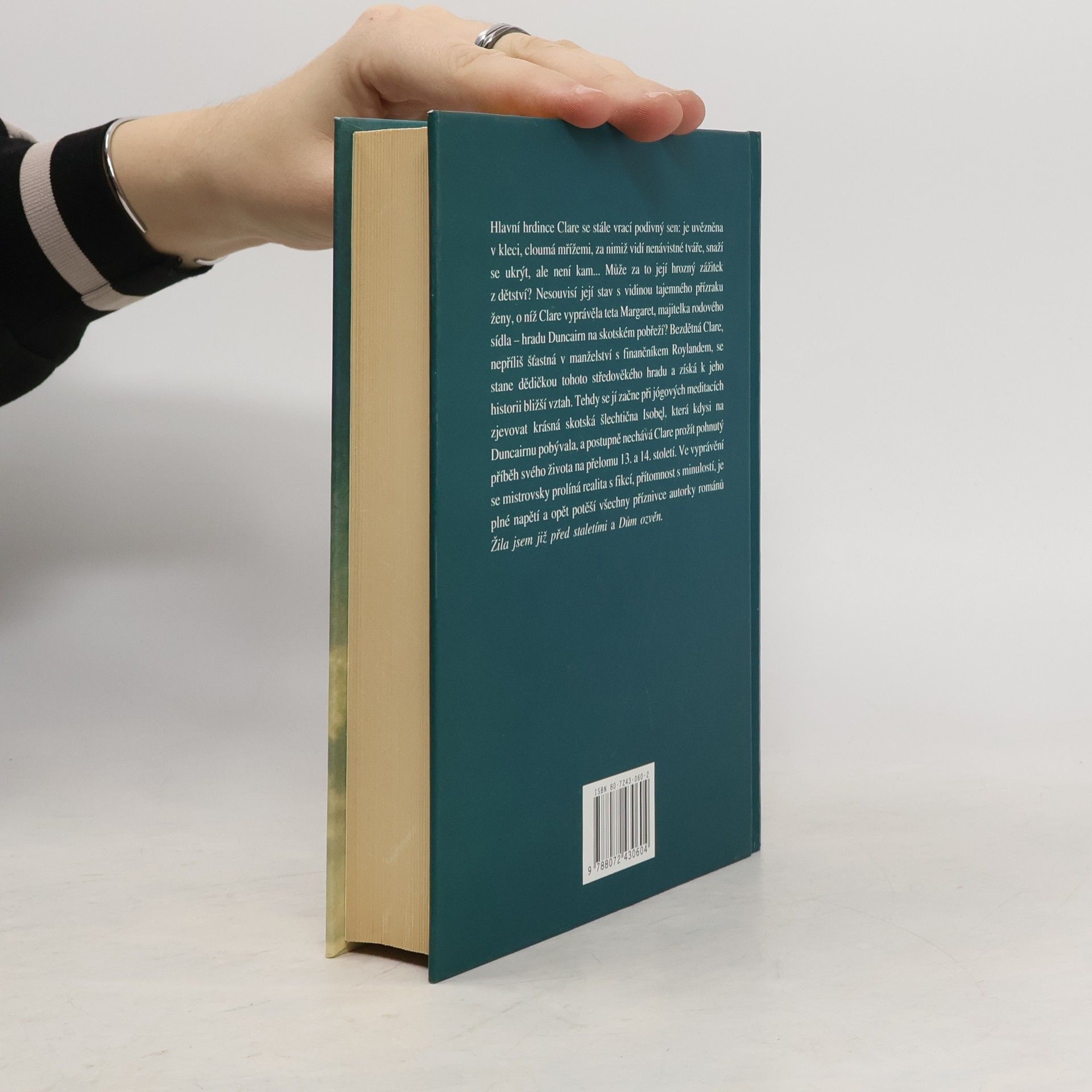 Bezdětné Clare, manželce bezohledného finančníka Roylanda, se při jógových meditacích zjevuje tajemný přízrak ženy z dávného středověku, krásné skotské šlechtičny Isobel, která nechává citlivou a v manželství nešťastnou Clare prožít dramatické chvíle svého života na přelomu 13. a 14. století. Ve vyprávění se mistrovsky prolíná realita s fikcí, přítomnost s minulostí, napínavý děj je plný nečekaných zvratů i milostných vášní, právě takový, jaký už čtenáři od oblíbené spisovatelky očekávají.