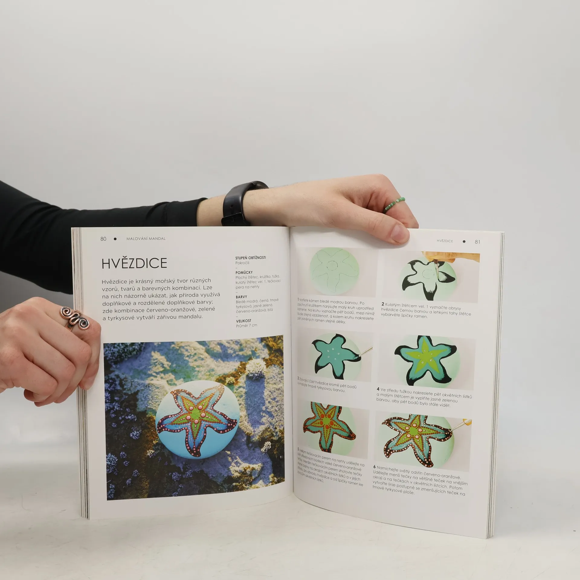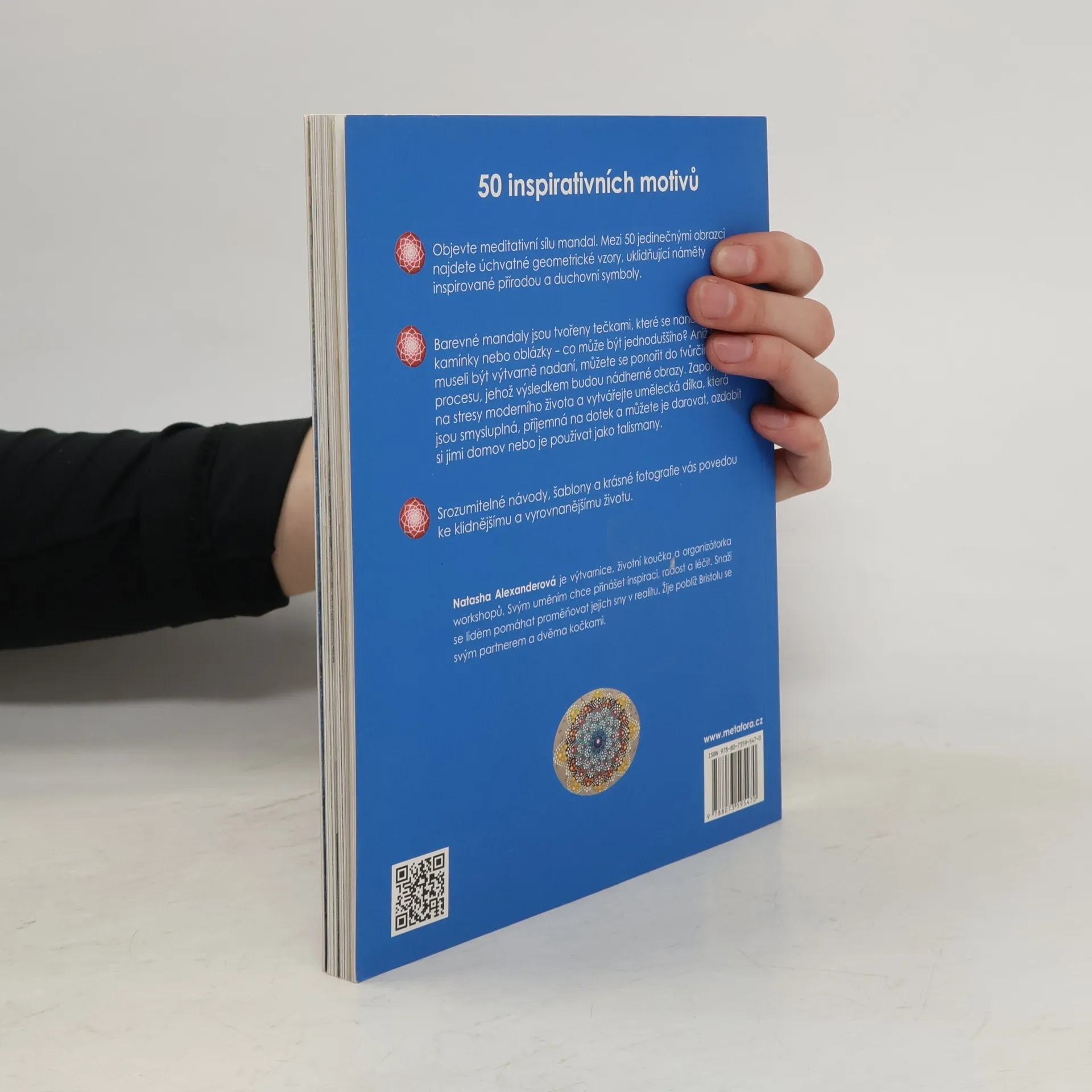 Objevte meditativní sílu mandal, 50 inspirativních motivů Barevné mandaly jsou tvořeny tečkami, nanášenými na kamínky nebo oblázky. Co může být jednoduššího? I bez výtvarného nadaní se můžete se ponořit do tvůrčího procesu, jehož výsledkem budou nádherné obrazce. Mezi 50 jedinečnými motivy najdete úchvatné geometrické vzory, uklidňující vzorce inspirované přírodou a duchovní symboly. Zapomeňte na stresy moderního života a vytvářejte malá umělecká díla, která jsou smysluplná a příjemná na dotek a můžete je darovat, ozdobit si jimi domov nebo je používat jako talismany. Srozumitelné návody, šablony a krásné fotografie vás povedou ke zklidnění a uvolnění od stresu.