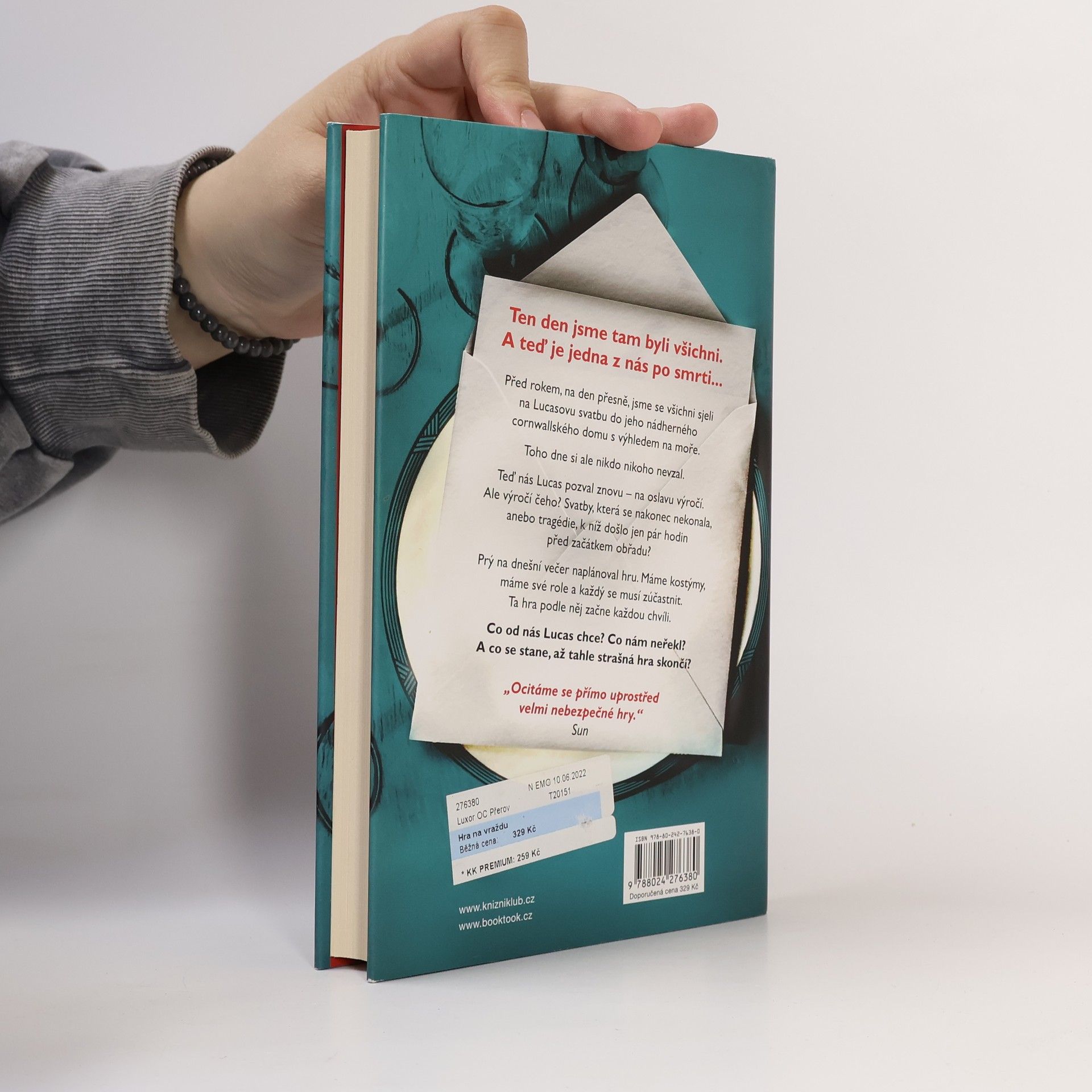 Ten den jsme tam byli všichni. A teď je jedna z nás po smrti... Před rokem, na den přesně, jsme se všichni sjeli na Lucasovu svatbu do jeho nádherného cornwallského domu s výhledem na moře. Toho dne si ale nikdo nikoho nevzal. Teď nás Lucas pozval znovu – na oslavu výročí. Ale výročí čeho? Svatby, která se nakonec nekonala, anebo tragédie, k níž došlo jen pár hodin před začátkem obřadu? Prý na dnešní večer naplánoval hru. Máme kostýmy, máme své role a každý se musí zúčastnit. Začneme prý každou chvíli. Co od nás Lucas chce? Co nám neřekl? A co se stane, až tahle strašná hra skončí?