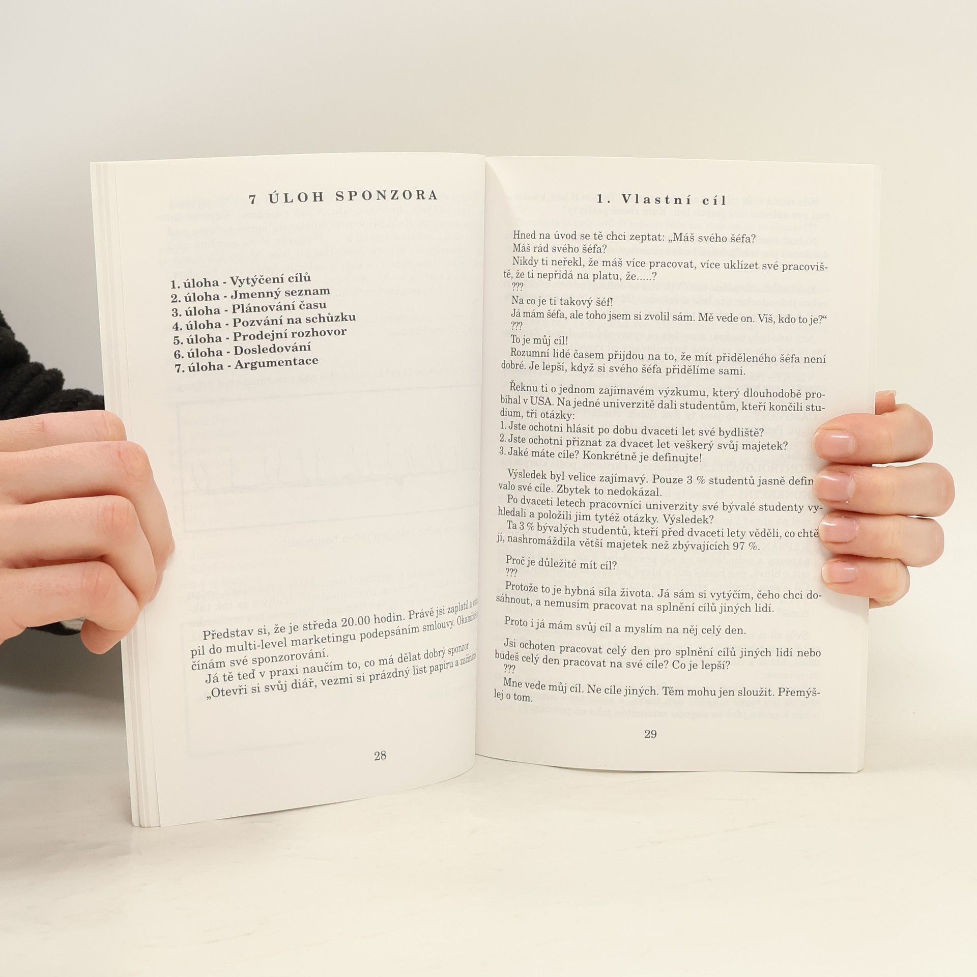 Od počátku mého působení v multi - level marketingu (dále jen MLM) slýchávám o problémech, které mají lidé vstupující do našeho obchodu. I já jsem měl, ale po delší době jsem zjistil, že jsem si je vytvářel sám. Dělal jsem to tak dlouho, až mi má sponzorka řekla: "V MLM můžeš najít jen tři věci: 1. PROBLÉMY 2. VÝMLUVY 3. PENÍZE. Co chceš? Vyber si." Má odpověď byla jasná: "Chci peníze!" "Potom zapomeň na první dvě věci a dobře mě poslouchej. Nedělej problémy a nedovol to ani druhým. Nevymýšlej si žádné výmluvy, vše u nás děláš dobrovolně a neposlouchej ani výmluvy druhých. Raději se jich zeptej, zda je někdo nutí. A začni už konečně se mnou vydělávat peníze. Já tě to naučím! To co tě naučím, ty budeš pak učit dál své spolupracovníky. Pak s nimi budeš učit jejich další kolegy a....a tak dál."