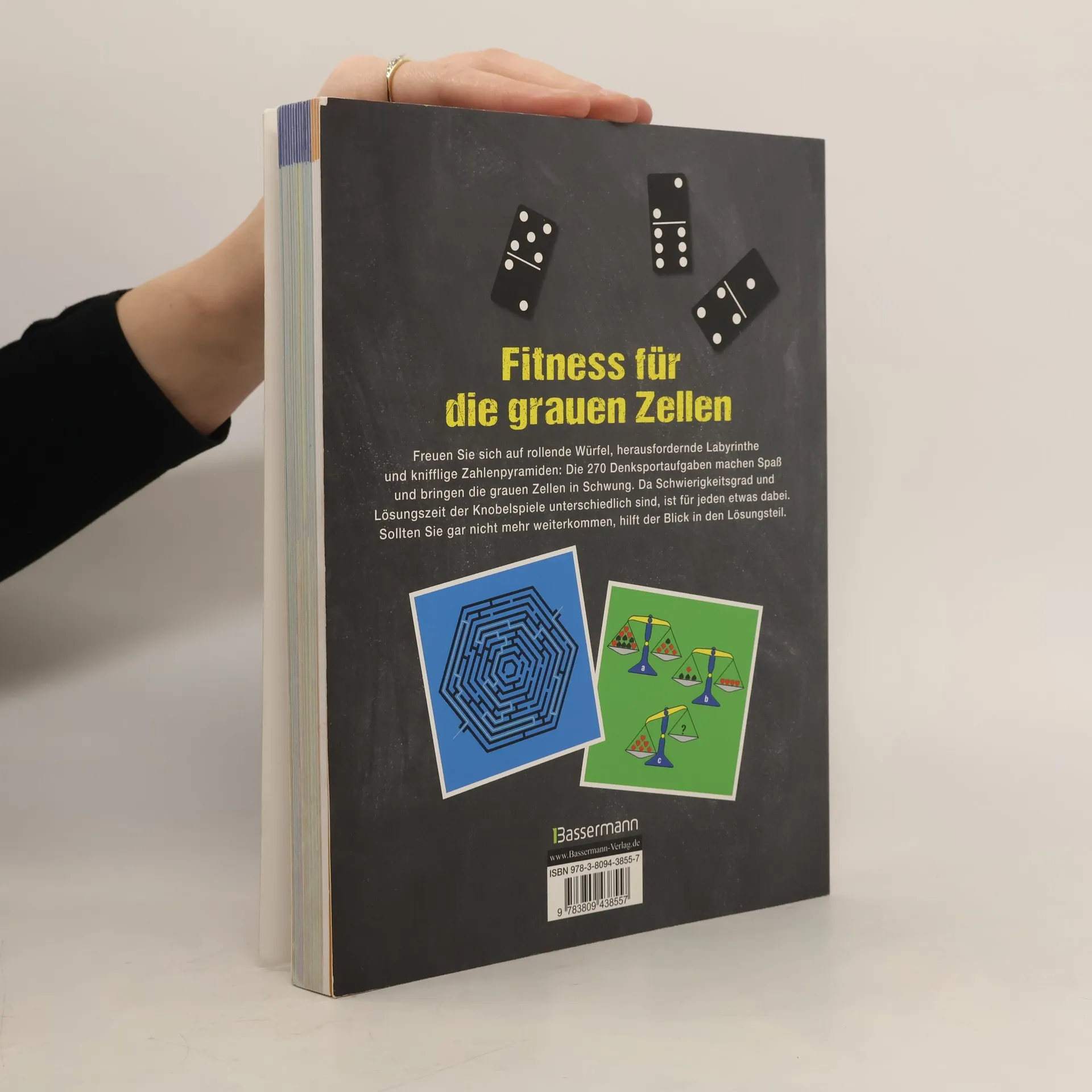 Fitnesstraining für die grauen Zellen Rollende Würfel, verwirrende Labyrinthe und knifflige Zahlenpyramiden: Die 270 Knobelspiele und Denksportaufgaben machen nicht nur Spaß, sondern bringen auch die grauen Zellen in Schwung. Da sich die Aufgaben in Schwierigkeitsgrad und Lösungszeit unterscheiden, ist für jeden etwas dabei. Sollte man gar nicht mehr weiterkommen, hilft der Blick in den Lösungsteil.