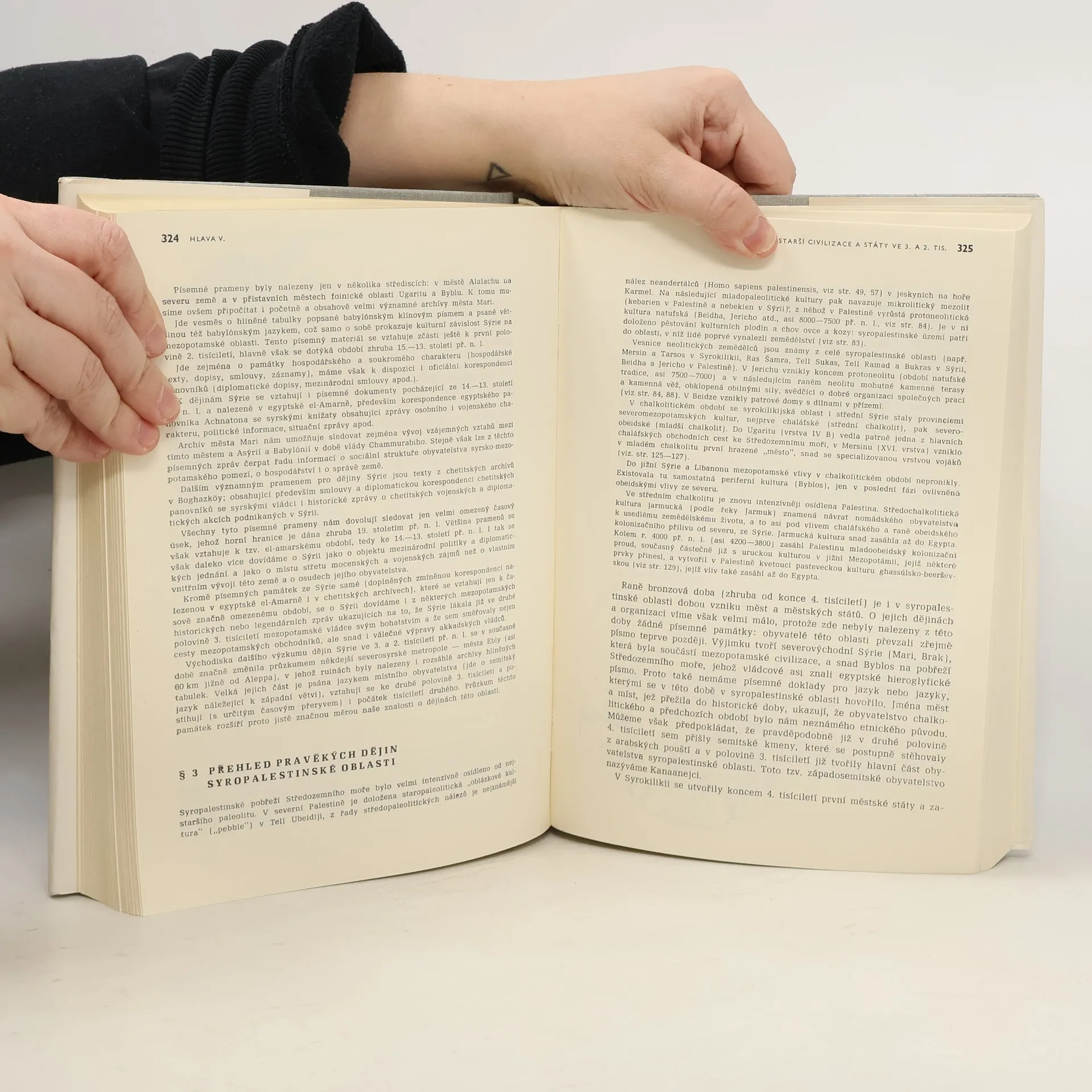 2. vydání První svazek podává výklad o vzniku člověka a lidské společnosti v paleolitu a o počátcích zemědělství, řemesel a měst v mladší době kamenné. Líčí dějiny nejstarších civilizací v Mezopotámii, Egyptě, Malé Asii, Egejské oblasti a v ostatní Evropě v době bronzové. Seznamuje s vývojem států a říší na Předním východě v 1. pol. 1. tisíciletí př. n. l., s počátky řeckého státu, s vrcholným obdobím a pádem klasické polis a se vznikem helénistických říší.