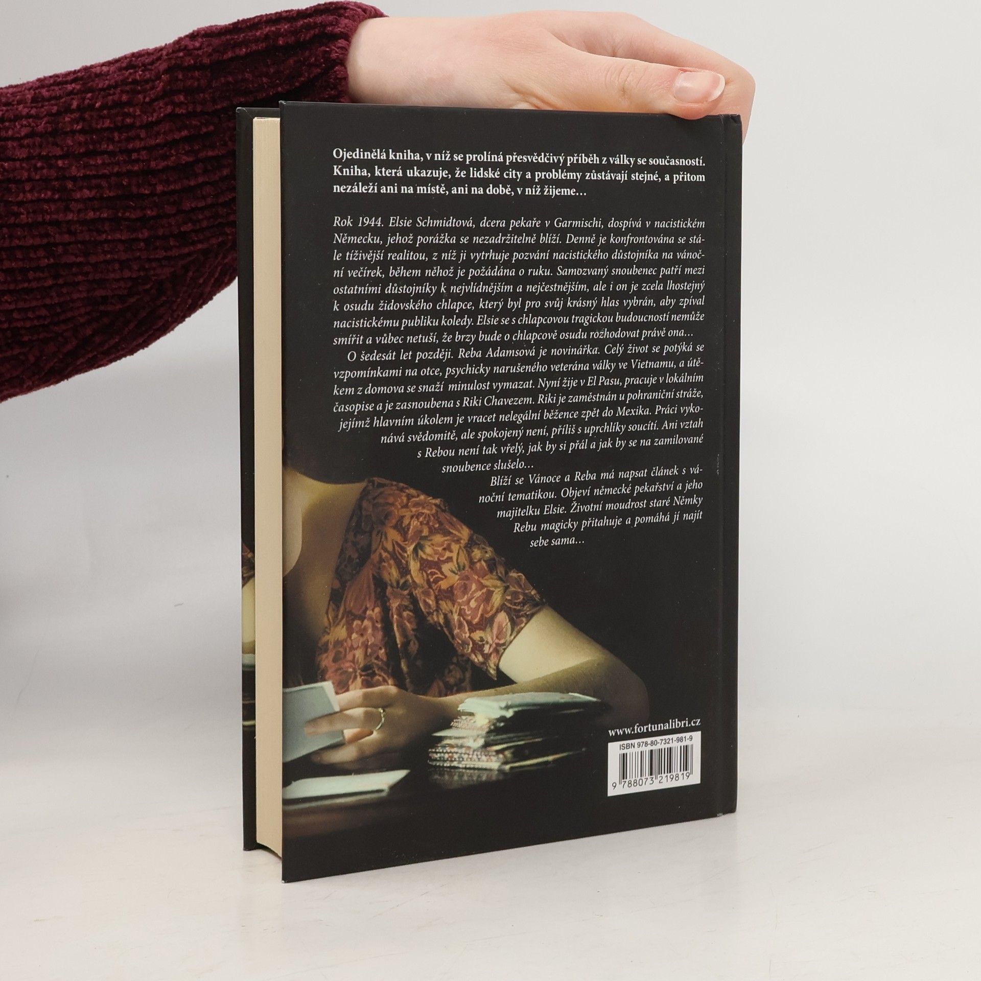 Ojedinělá kniha prolíná příběh z války se současností, ukazující, že lidské city a problémy zůstávají stejné bez ohledu na čas a místo. V roce 1944 dospívá Elsie Schmidtová, dcera pekaře v nacistickém Německu, v době blížící se porážky. Denně čelí tíživé realitě, ale pozvání nacistického důstojníka na vánoční večírek ji vytrhuje z každodenního stresu. S obavami přijímá, neboť odmítnutí by mohlo ohrozit její rodinu. Na večírku je požádána o ruku, ačkoliv její snoubenec, ač milý a čestný, je lhostejný k osudu židovského chlapce, vybraného k zpěvu pro nacistické publikum. Elsie se s chlapcovou tragédií nemůže smířit a netuší, že brzy bude o jeho osudu rozhodovat právě ona. O šedesát let později se novinářka Reba Adamsová snaží vyrovnat s traumatem z dětství, kdy její otec, veterán z Vietnamu, trápil rodinu svými patologickými náladami. Žije v El Pasu, pracuje v lokálním časopise a je zasnoubena s Riki Chavezem, pohraničníkem, který se snaží vracet nelegální běžence. Jeho soucit s uprchlíky však narušuje jejich vztah. Když se blíží Vánoce, Reba objeví německé pekařství a jeho majitelku Elsie. Životní moudrost staré Němky ji magicky přitahuje a pomáhá jí najít sebe sama.