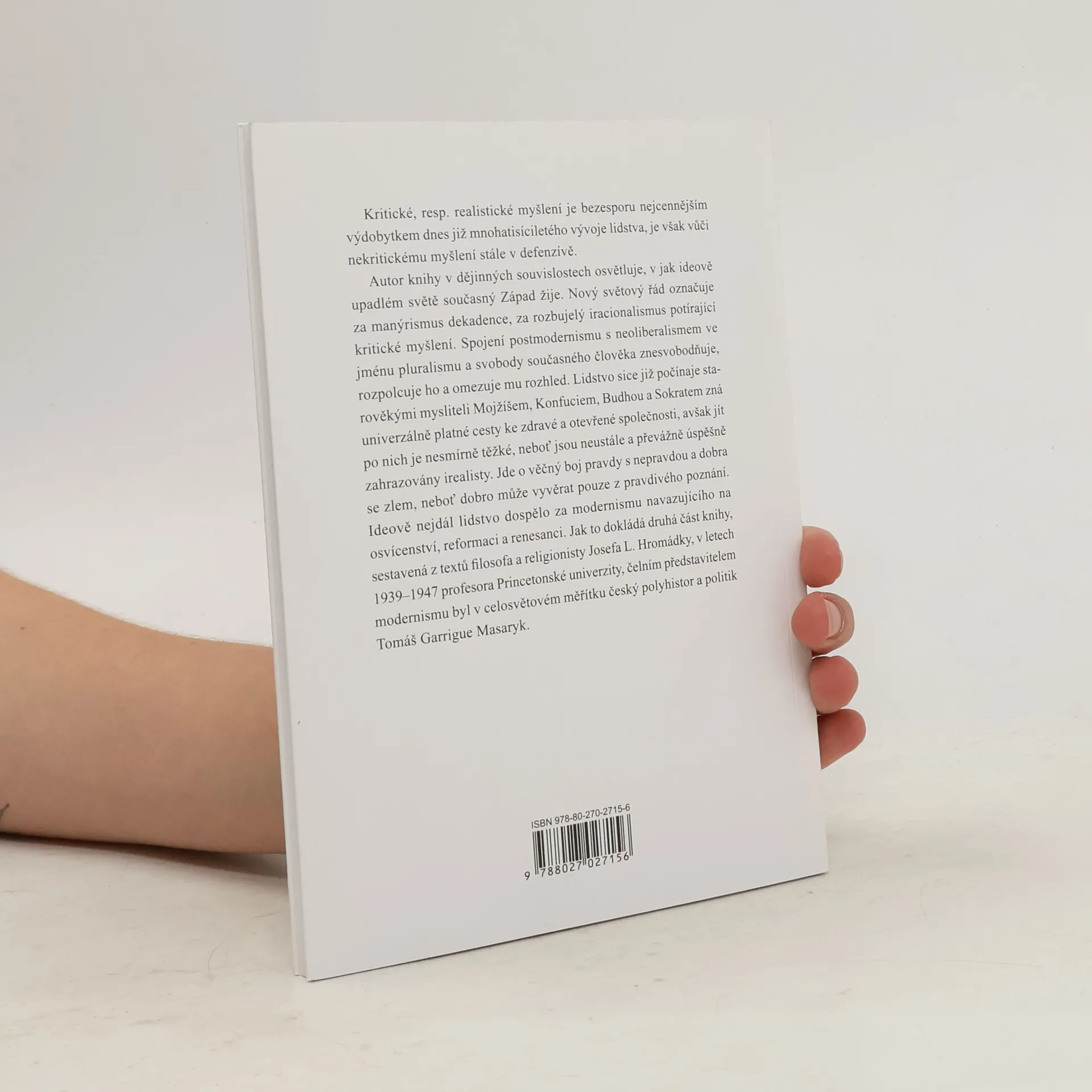 Kritické, resp. realistické myšlení je bezesporu nejcennějším výdobytkem dnes již mnohatisíciletého vývoje lidstva, je však vůči nekritickému myšlení stále v defenzívě. Autor knihy v dějinných souvislostech osvětluje, v jak ideově upadlém světě současný Západ žije. Nový světový řád označuje za manýrismus dekadence, za rozbujelý iracionalismus potírající kritické myšlení. Spojení postmodernismu s neoliberalismem ve jménu pluralismu a svobody současného člověka znesvobodňuje, rozpolcuje ho a omezuje mu rozhled. Lidstvo sice již počínaje starověkými mysliteli Mojžíšem, Konfuciem, Budhou a Sokratem zná univerzálně platné cesty ke zdravé a otevřené společnosti, avšak jít po nich je nesmírně těžké, neboť jsou neustále a převážně úspěšně zahrazovány irealisty. Jde o věčný boj pravdy s nepravdou a dobra se zlem, neboť dobro může vyvěrat pouze z pravdivého poznání. Ideově nejdál lidstvo dospělo za modernismu navazujícího na osvícenství, reformaci a renesanci. Jak to dokládá druhá část knihy, sestavená z textů filosofa a religionisty Josefa L. Hromádky, v letech 1939-1947 profesora Princetonské univerzity, čelním představitelem modernismu byl v celosvětovém měřítku český polyhistor a politik Tomáš Garrigue Masaryk.