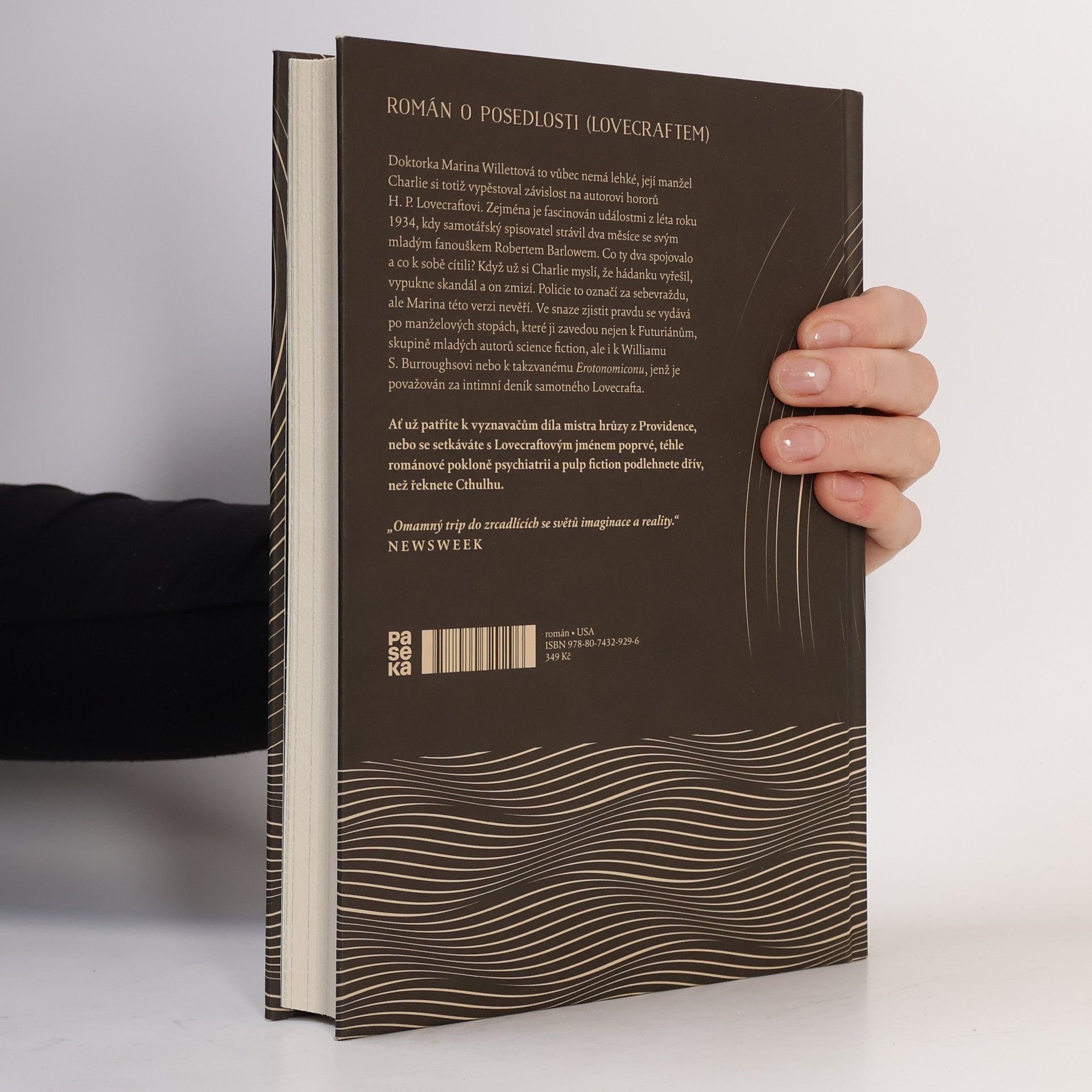 Doktorka Marina Willetová to vůbec nemá lehké, její manžel Charlie si totiž vypěstoval závislost na autorovi hororů H. P. Lovecraftovi. Zejména je fascinován událostmi z léta roku 1934, kdy samotářský spisovatel strávil dva měsíce se svým mladým fanouškem Robertem Barlowem. Co ty dva spojovalo a co k sobě cítili? Když už si Charlie myslí, že hádanku vyřešil, vypukne skandál a on zmizí. Policie to označí za sebevraždu, ale Marina této verzi nevěří. Ve snaze zjistit pravdu se vydává po manželových stopách, které ji zavedou nejen k Futuriánům, skupině mladých autorů science fiction, ale i k Williamu S. Burroughsovi nebo k takzvanému Erotonomikonu, jenž je považován za intimní deník samotného Lovecrafta. Ať už patříte k vyznavačům díla mistra hrůzy z Providence, nebo se setkáváte s Lovecraftovým jménem poprvé, téhle románové pokloně psychiatrii a pulp fiction podlehnete dřív, než řeknete Cthulhu.