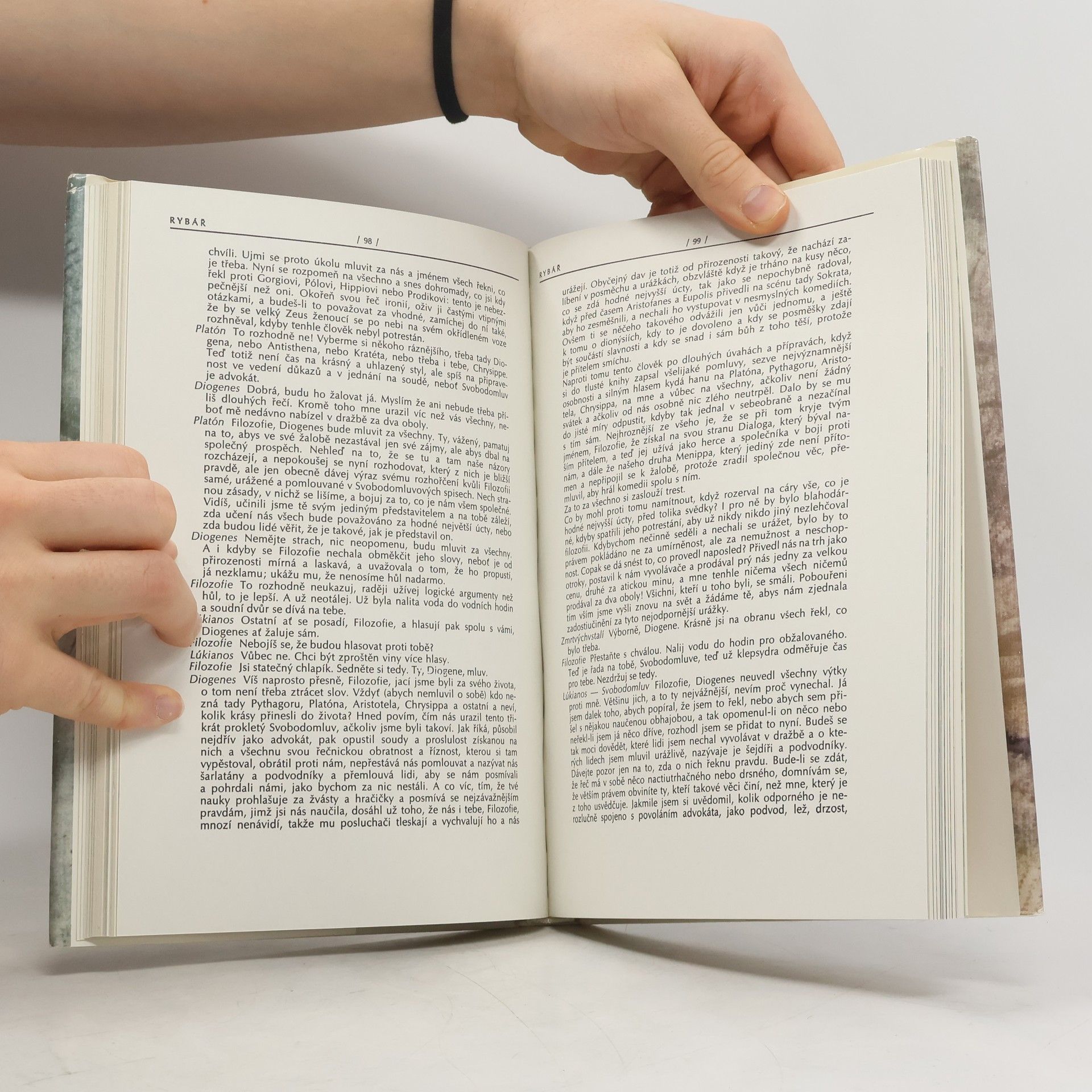 Patnáct nejzábavnějších Lúkianových satir, parodií a dialogů je zhruba pětinou toho, co se nám z díla rozverného antického vypravěče zachovalo. Všecky vynikají břitkým vtipem a osvobozujícím smíchem. V Hostině ukazuje spisovatel, jací jsou filozofové v jeho době pokrytci a šarlatáni: ti, kdo z řečnických kateder hlásají lidstvu ideály snášenlivost, zdrženlivosti a skromnosti se na hostině u bohatého mecenáše přejedí, opijí a vyčtou si tak hrozné věci, že se ze slovní půtky vyvine nakonec pěstní potyčka a hodovníci odcházejí se šrámy, boulemi a pohmožděninami. V Cestě nad oblaky se autor posmívá plané honbě za bohatstvím, ve Snu víře v převtělování, v Příživníkovi paroduje lidskou dotěrnost, ve Vyděděném se dozvídáme o léčebných postupech starověké medicíny, v Oslovi o kouzelnických praktikách thesalských čarodějnic i o milostných dobrodružstvích jejich služek. Korunou Lúkianových vyprávění je fantazie o cestě na Měsíc, do podsvětí a na Ostrovy blažených a Ostrovy hříšníků, nazvaná ironicky Pravdivé příběhy. pod slupkou nezávazných rozpustilostí se tají v pracích antického satirika nejedna hlubší myšlenka a záleží na důvtipu čtenáře, kolik si z těchto úsměvných historek odnese jadrnějšího fládru.