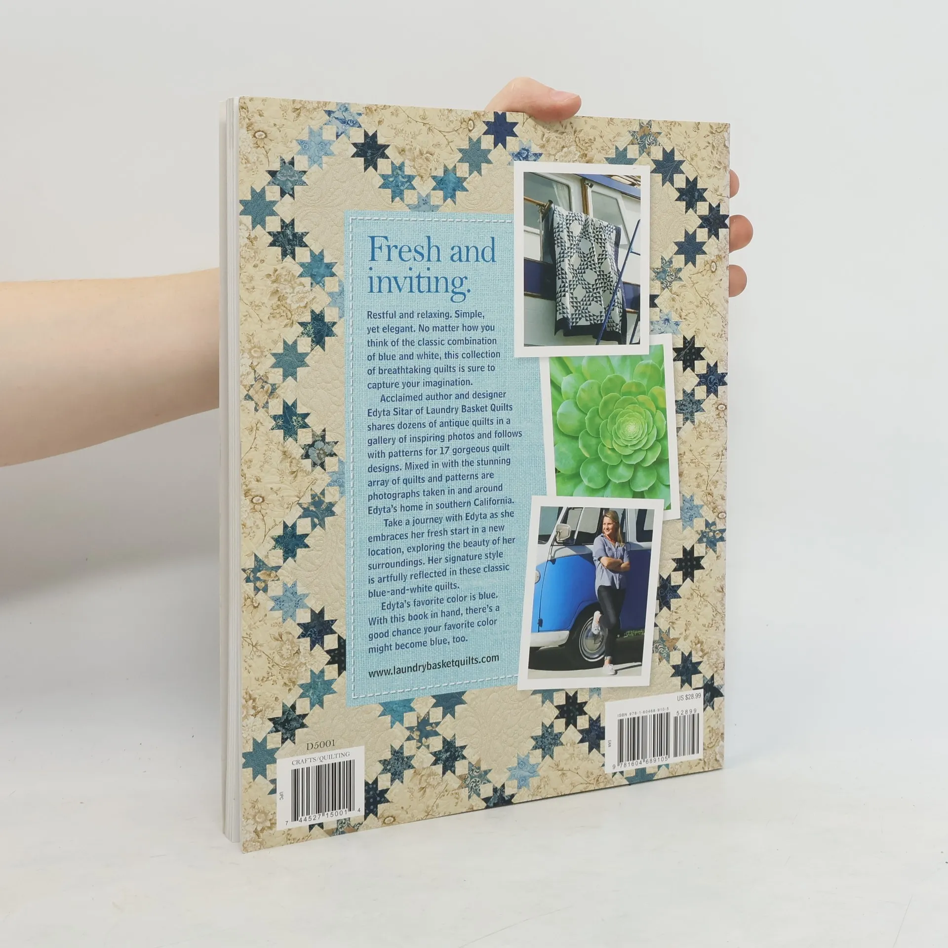 Author and designer Edyta Sitar of Laundry Basket Quilts shares dozens of antique quilts in a gallery of inspiring photos and follows with patterns for 17 quilt designs. Mixed in with the stunning array of quilts and patterns are photographs taken in and around Edyta's home in southern California