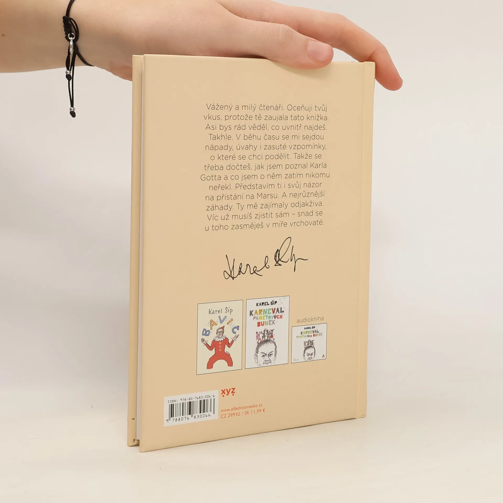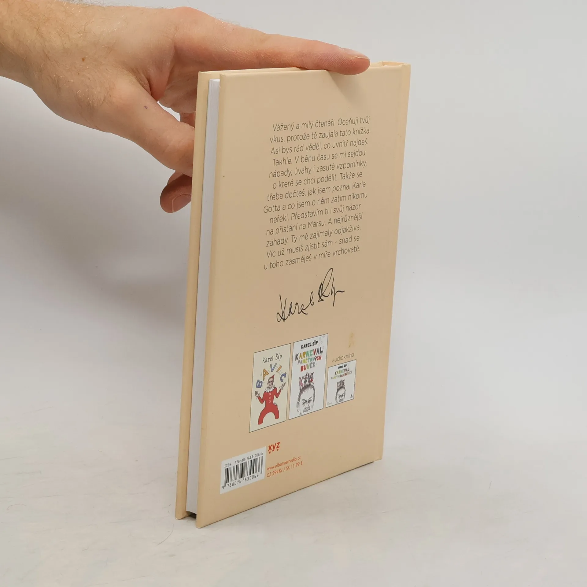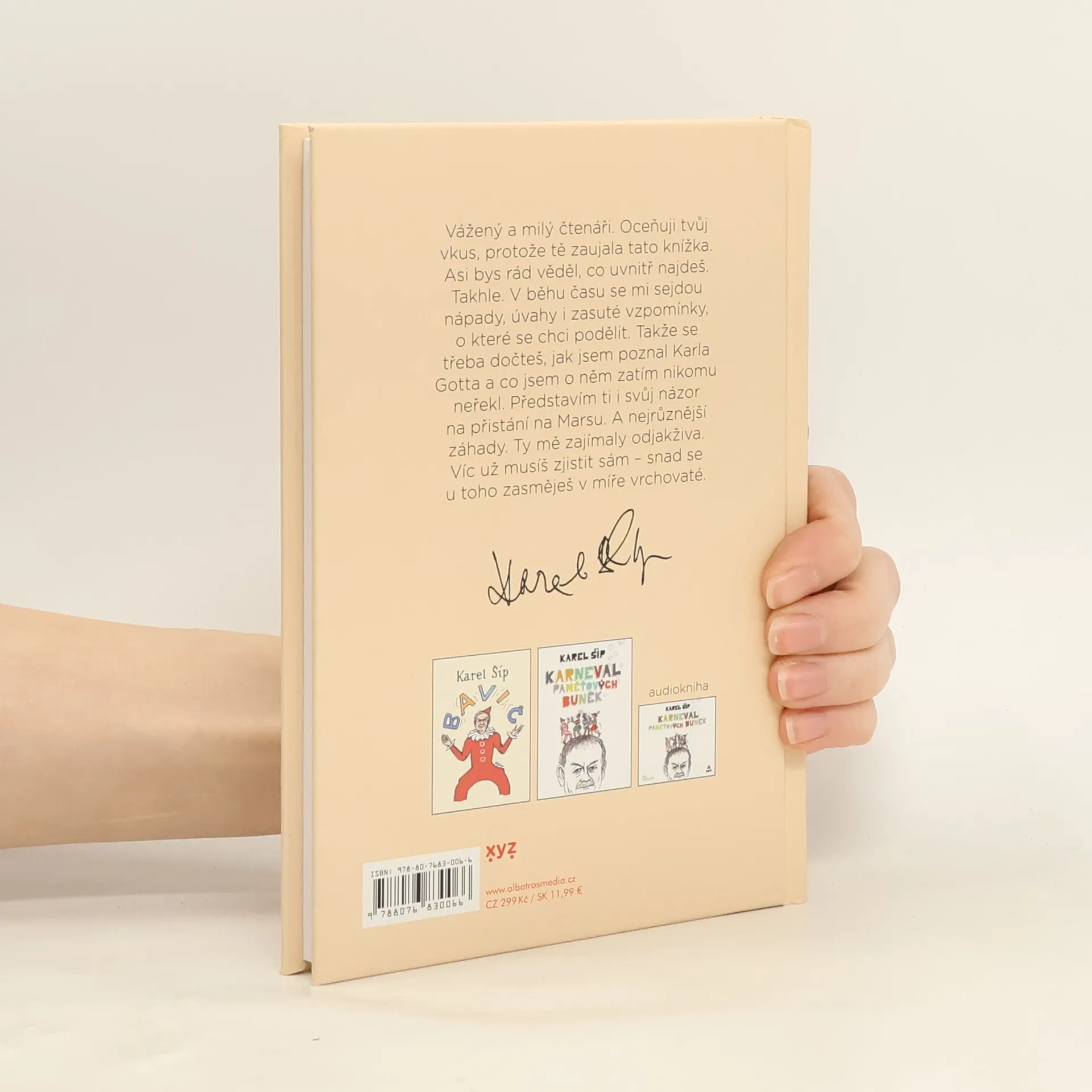 Glosy a vzpomínky Karla Šípa, které vás zasáhnou přímo do bránice. Vážený a milý čtenáři. Oceňuji tvůj vkus, protože tě zaujala tato knížka. Asi bys rád věděl, co uvnitř najdeš. Takhle. V běhu času se mi sejdou nápady, úvahy i zasuté vzpomínky, o které se chci podělit. Takže se třeba dočteš, jak jsem poznal Karla Gotta a co jsem o něm zatím nikomu neřekl. Představím ti i svůj názor na přistání na Marsu. A nejrůznější záhady. Ty mě zajímaly odjakživa. Víc už musíš zjistit sám – snad se u toho zasměješ v míře vrchovaté.