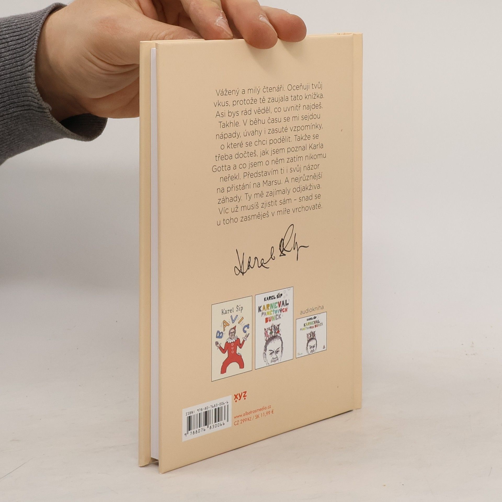 Glosy a vzpomínky Karla Šípa, které vás zasáhnou přímo do bránice. Vážený a milý čtenáři. Oceňuji tvůj vkus, protože tě zaujala tato knížka. Asi bys rád věděl, co uvnitř najdeš. Takhle. V běhu času se mi sejdou nápady, úvahy i zasuté vzpomínky, o které se chci podělit. Takže se třeba dočteš, jak jsem poznal Karla Gotta a co jsem o něm zatím nikomu neřekl. Představím ti i svůj názor na přistání na Marsu. A nejrůznější záhady. Ty mě zajímaly odjakživa. Víc už musíš zjistit sám – snad se u toho zasměješ v míře vrchovaté.