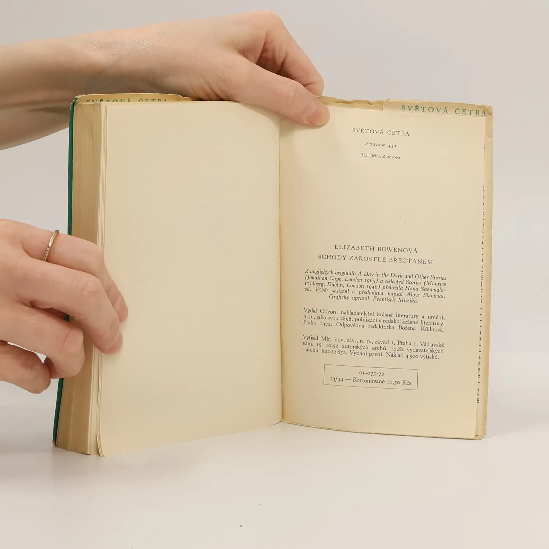 Dvanáct čechovovsky laděných povídek a novel anglické autorky irského původu, inspirovaných válečnými hrůzami i poklidnou atmosférou venkovských sídel, překypuje zjitřenou senzibilitou i břitkou ironií. Vystupují v nich vedle dospělých i děti, jejichž bezprostřední vnímavost je spisovatelce blízká (Pláč, marný pláč), a v neposlední době i neživé věci, které podněcují prozaičku k bizarním příběhům (Strach má velké oči).
