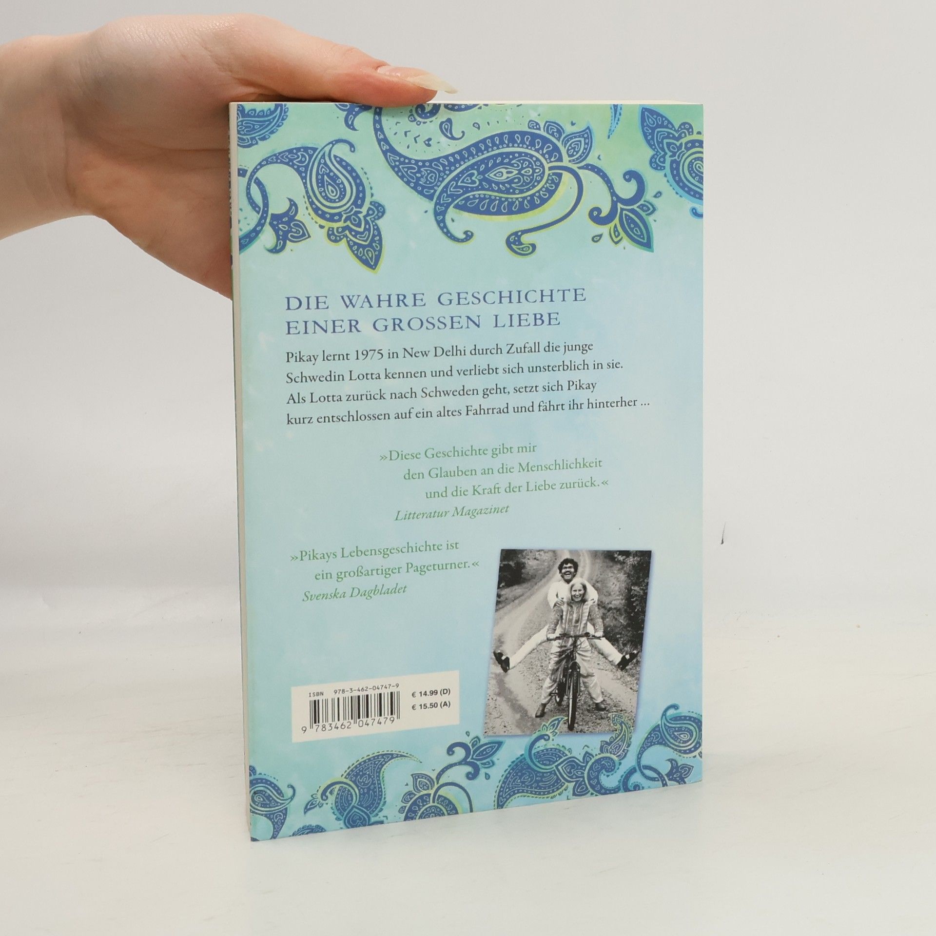 Alles, was man zum Glück braucht, ist Vertrauen und ein Fahrrad 1975 lernt Pikay in Neu-Delhi durch Zufall die junge Schwedin Lotta kennen und verliebt sich unsterblich in sie. Als Lotta zurück nach Schweden geht, setzt sich Pikay kurz entschlossen auf ein altes Fahrrad und fährt ihr hinterher … Diese Geschichte erzählt vom unglaublichen Schicksal des kastenlosen Pradyumma Kumar, genannt Pikay. In ärmlichen Verhältnissen aufgewachsen, kennt er nur Extreme: Mal wird der talentierte Porträtzeichner von Indira Gandhi eingeladen, sie zu malen, mal muss er hungern und schläft auf der Straße. Eines Abends taucht neben seiner Staffelei ein blondes Mädchen auf – und eine unglaubliche Liebesgeschichte nimmt ihren Anfang. Als Lotta zurück nach Schweden geht, stehen die Chancen schlecht für die beiden – wäre da nicht ein altes Fahrrad. Damit macht sich Pikay auf den Weg, um die 7.000 km von Asien nach Europa zurückzulegen. Auch zahlreiche Rückschläge können ihn nicht aufhalten, bis er schließlich tatsächlich in der Heimat Lottas ankommt, einer völlig anderen Welt … Um das Happy End gleich zu verraten: Heute sind die beiden seit über 35 Jahren verheiratet, haben zwei Kinder und leben auf einem alten Bauernhof in der Nähe von Borås. »Pikays Lebensgeschichte ist ein großartiger Pageturner.« Svenska Dagbladet