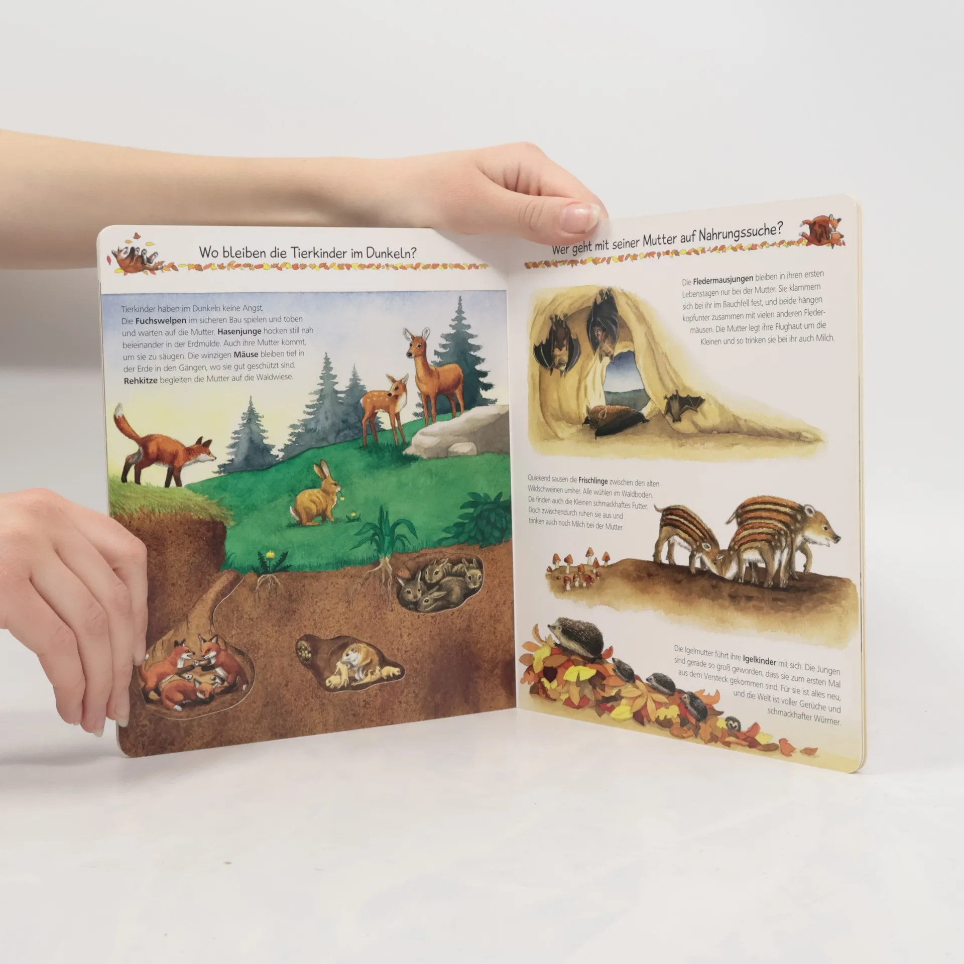 Welche Tiere sind nachts aktiv? Wie jagen sie ihre Beute? Wie orientieren sie sich? Mit den vielen Klappen wird ganz spielerisch viel Information vermittelt.