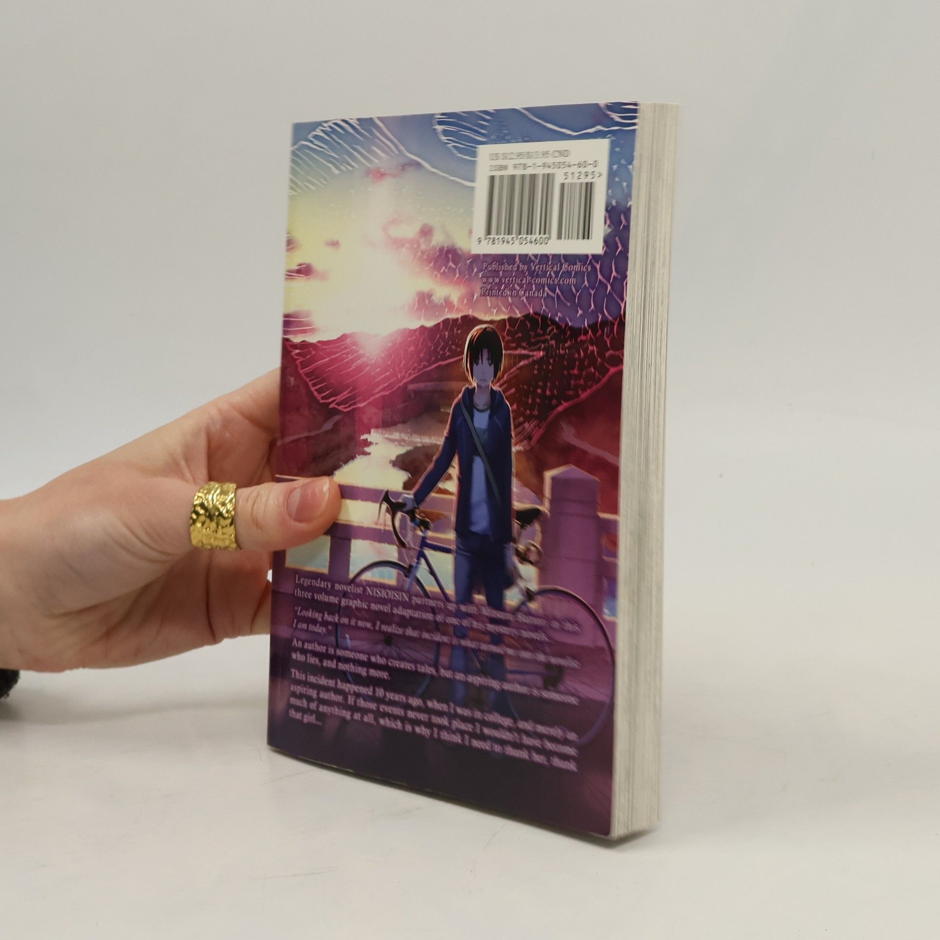 Legendary novelist NISIOISIN partners up with Mitsuru Hattori in this three volume graphic novel adaptation of one of his mystery novels... “Looking back on it now, I realize that incident is what turned me into the novelist I am today.” An author is someone who creates tales, but an aspiring author is someone who lies, and nothing more. This incident happened 10 years ago, when I was in college, and merely an aspiring author. If those events never took place I wouldn’t have become much of anything at all, which is why I think I need to thank her, thank that girl...