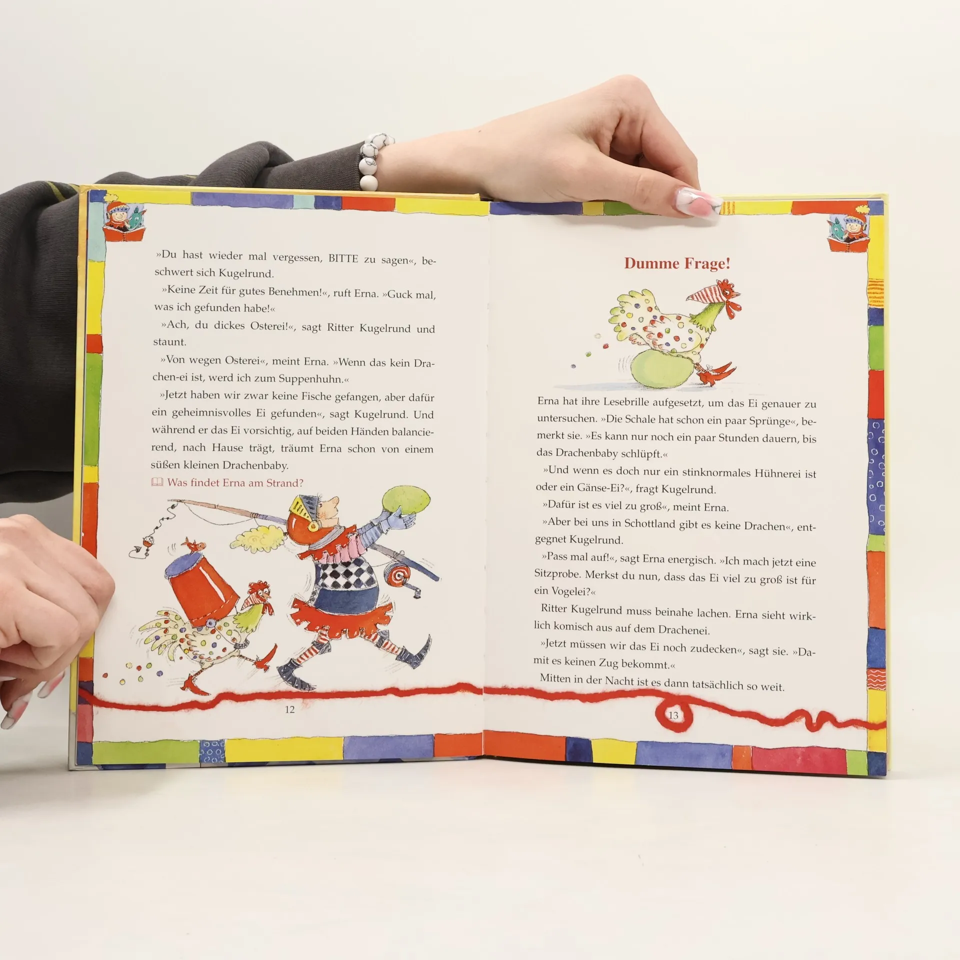 Ritter Kugelrund wohnt friedlich mit seinem Huhn Erna auf einer kleinen Burg. Doch als die beiden eines Tages ein geheimnisvolles Ei entdecken, ist es schnell um ihre gemütliche Ruhe geschehen: Aus dem Ei schlüpft nämlich kein Küken, sondern ein echter Drache - und ein besonders schlauer noch dazu. Als Ritter Kugelrund in eine gefährliche Räuberfalle gerät, ist er jedoch heilfroh, einen so schlauen Freund zu haben