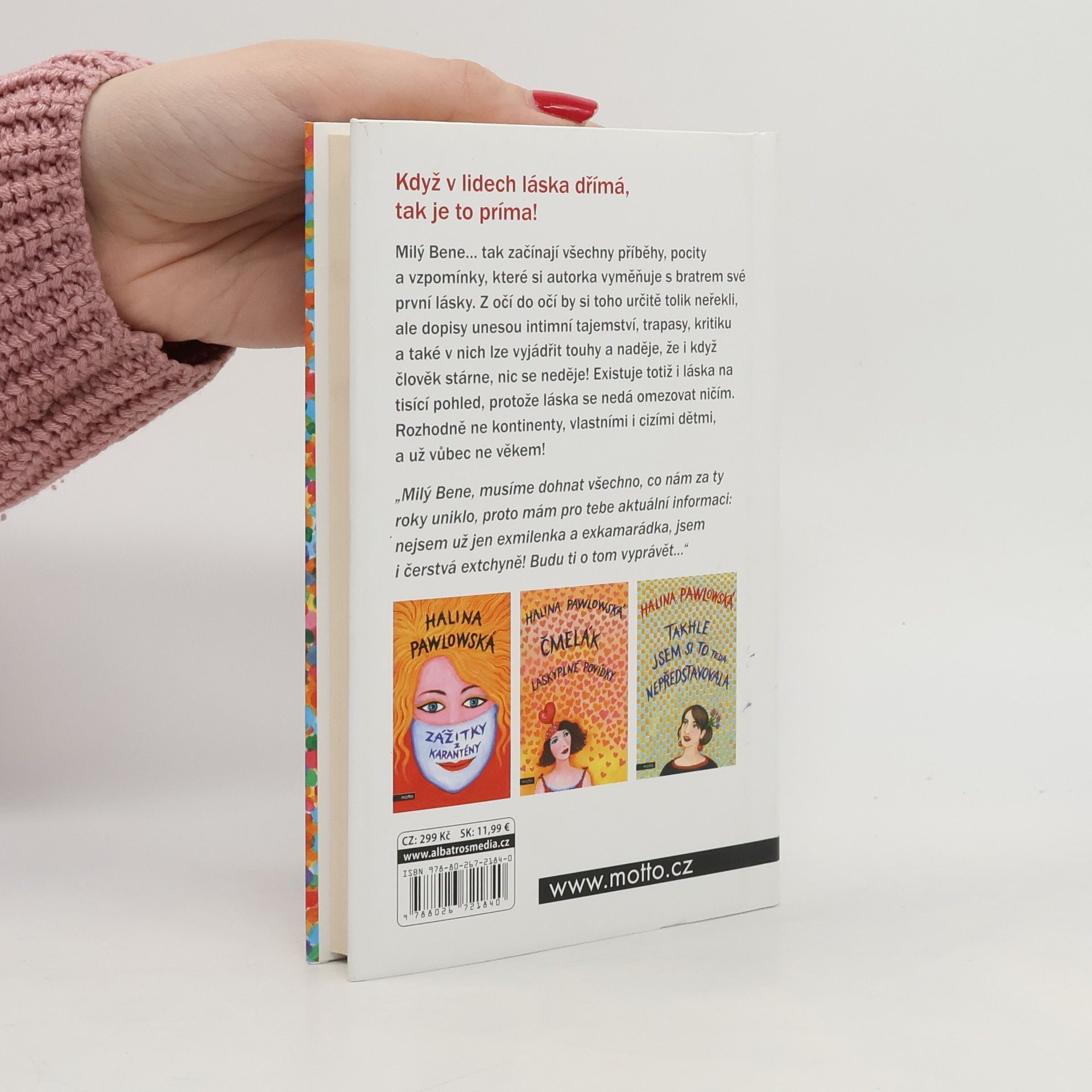 Nová kniha Haliny Pawlowské! Milý Bene… tak začínají všechny příběhy, pocity a vzpomínky, které si autorka vyměňuje s bratrem své první lásky. Z očí do očí by si toho určitě tolik neřekli, ale dopisy unesou intimní tajemství, trapasy, kritiku a také v nich lze vyjádřit touhy a naděje, že i když člověk stárne, nic se neděje! Existuje totiž i láska na tisící pohled, protože láska se nedá omezovat ničím. Rozhodně ne kontinenty, vlastními i cizími dětmi, a už vůbec ne věkem!