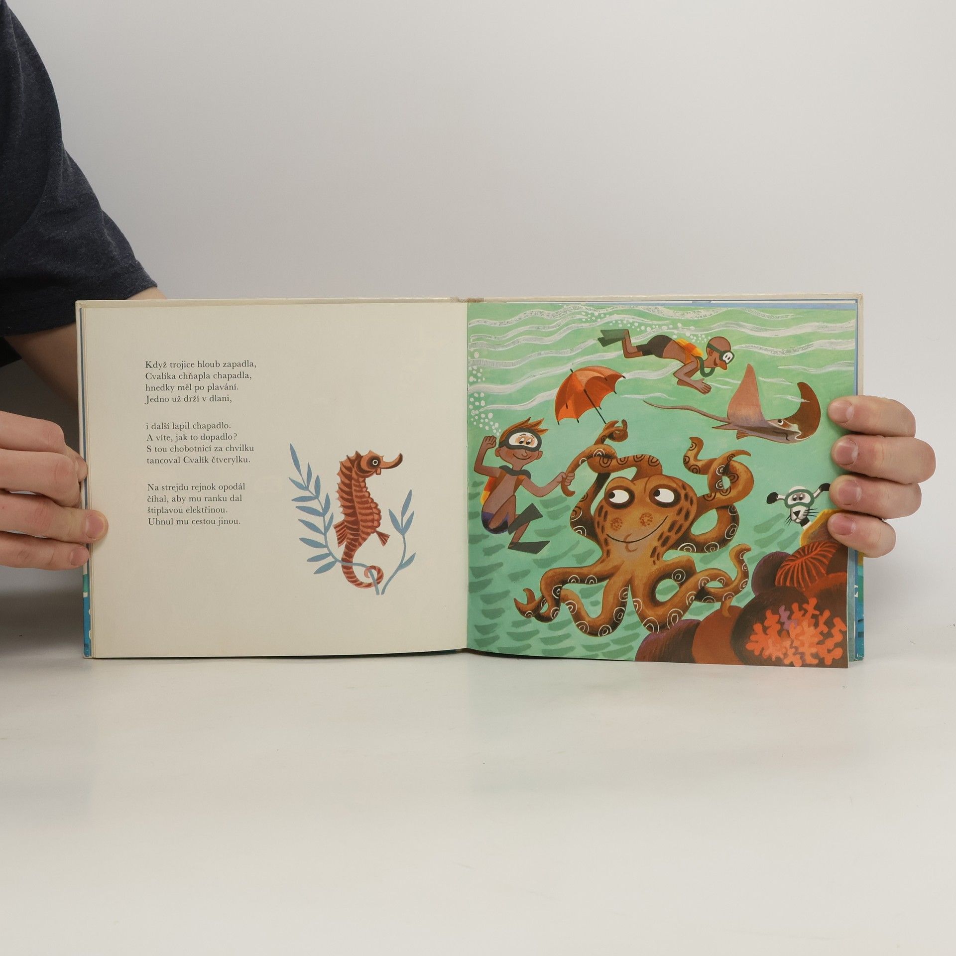 Verše, které formou prázdninového dobrodružství u moře objevují dětem život na mořské pláži, v blízkém přístavu, seznamují s koupáním v moři a při potápěčském dobrodružství s velkými i malými živočichy a rostlinami pod hladinou moře.