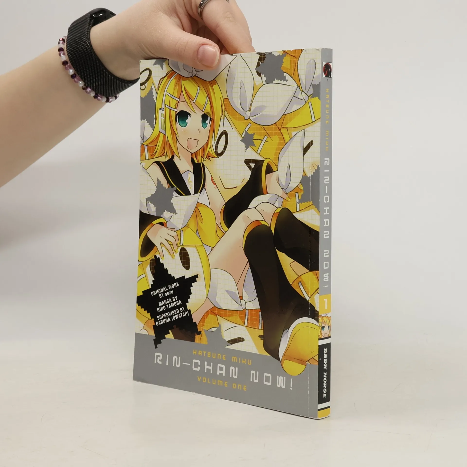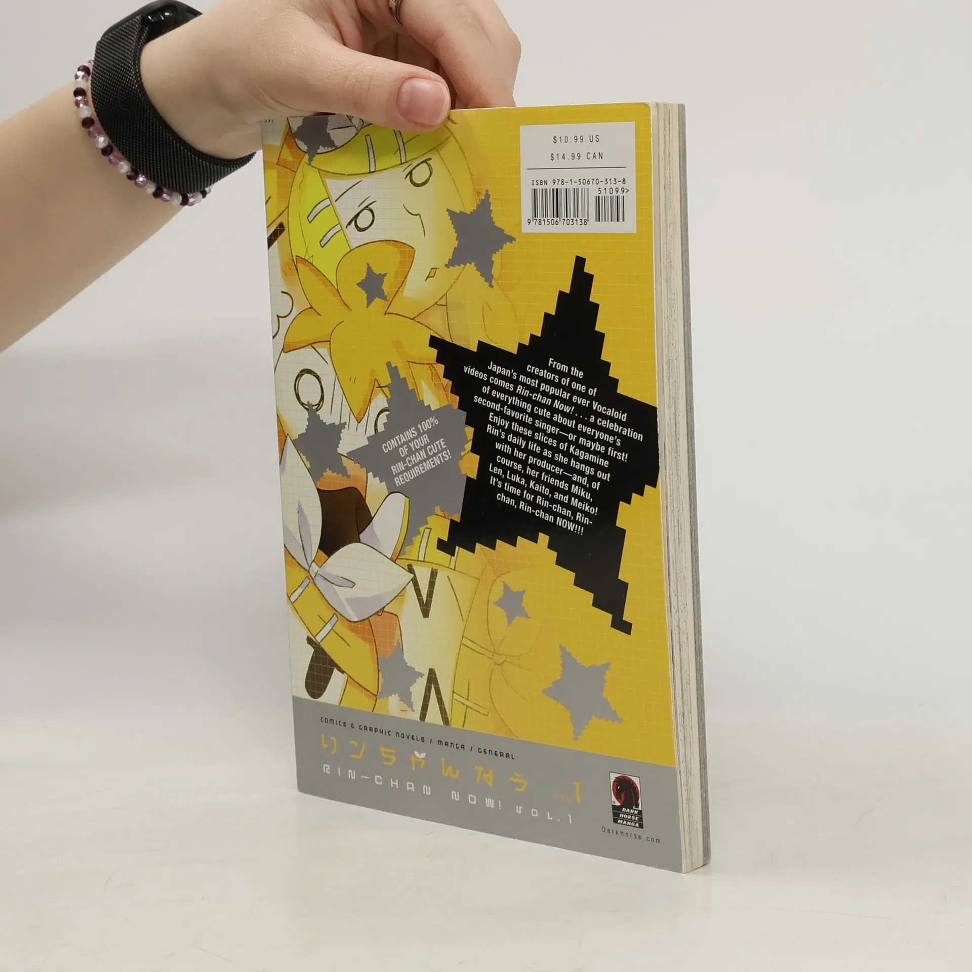 Have fun just hanging out on stage, in the studio, and at home with Kagamine Rin, the most popular Vocaloid next to Hatsune Miku herself! Miku's sassy blond friend takes center stage in this series that took inspiration from the music video Rin-Chan Now! The video is now a manga of the same name--written, drawn and edited by the video creators! The popular Rin appeared in the Dark Horse smash-hit, Unofficial Hatsune Mix, and was on the cover of Mikubon. Includes four pages in full color. Pubished in the larger format like Unofficial Hatsune Mix.