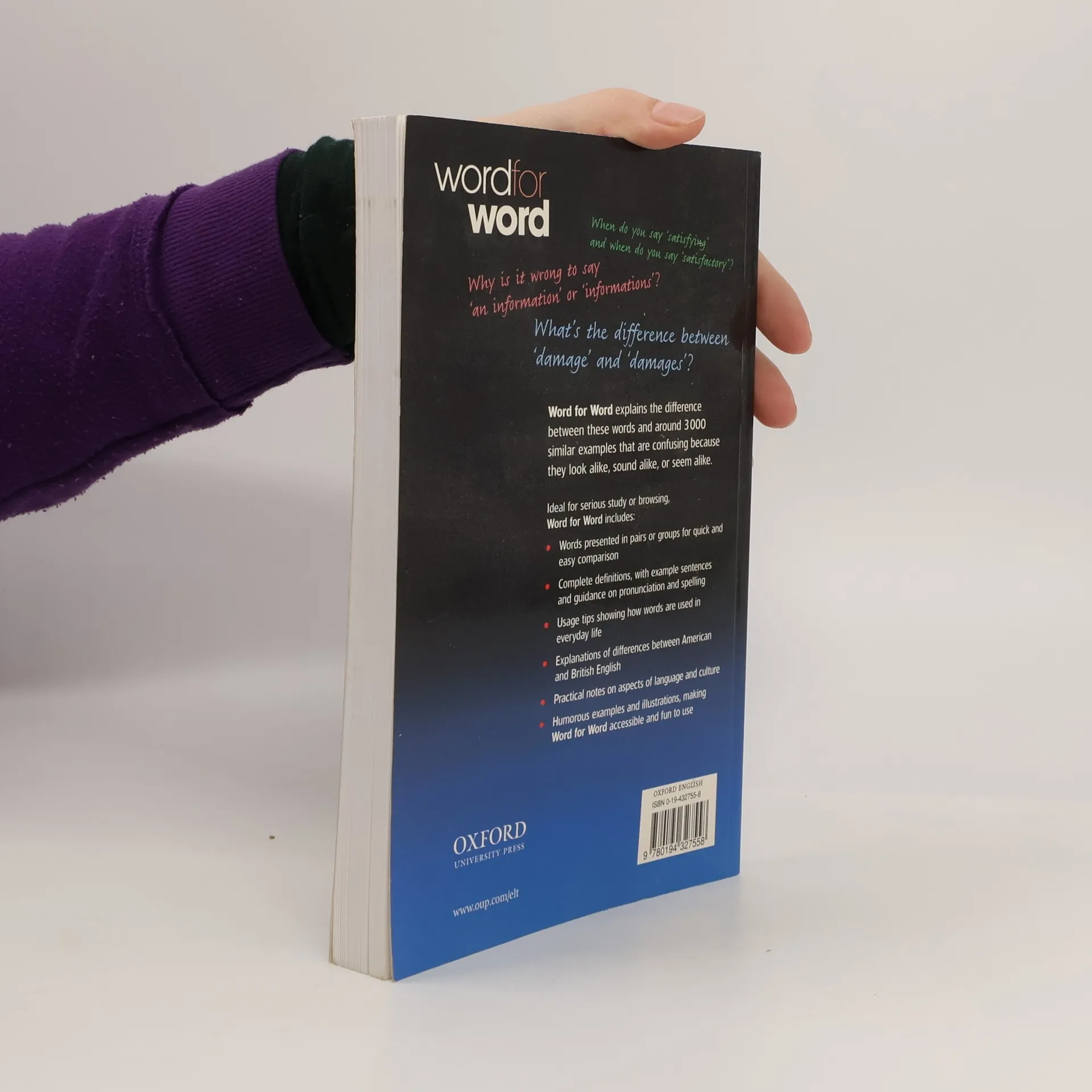 Carefully selected range of problem words makes Word for Word suitable for students across a range of levels. Presentation of words in pairs or groups makes it easier to see differences in meaning. Example sentences help show how a word is used in context. Reference boxes containing extra guidance on language issues and cultural variations give students a broader understanding of how the words are used in everyday life. Clear alphabetical format supported by cross-referencing and index means that words can be located quickly and easily. Use of humour to highlight typical errors makes Word for Word ideal for browsing as well as for serious reference.