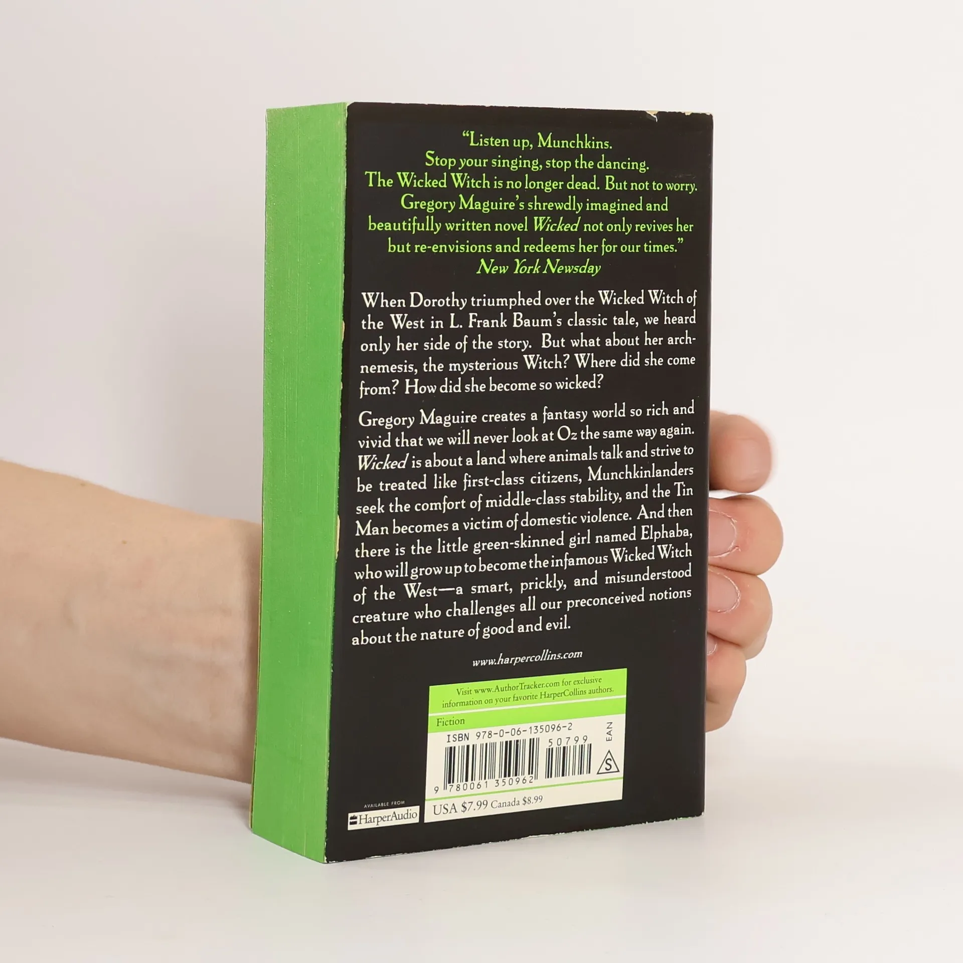 When Dorothy triumphed over the Wicked Witch of the West in L. Frank Baum's classic tale, we heard only her side of the story. But what about her arch-nemesis, the mysterious witch? Where did she come from? How did she become so wicked? And what is the true nature of evil? Gregory Maguire creates a fantasy world so rich and vivid that we will never look at Oz the same way again. Wicked is about a land where animals talk and strive to be treated like first-class citizens, Munchkinlanders seek the comfort of middle-class stability and the Tin Man becomes a victim of domestic violence. And then there is the little green-skinned girl named Elphaba, who will grow up to be the infamous Wicked Witch of the West, a smart, prickly and misunderstood creature who challenges all our preconceived notions about the nature of good and evil.