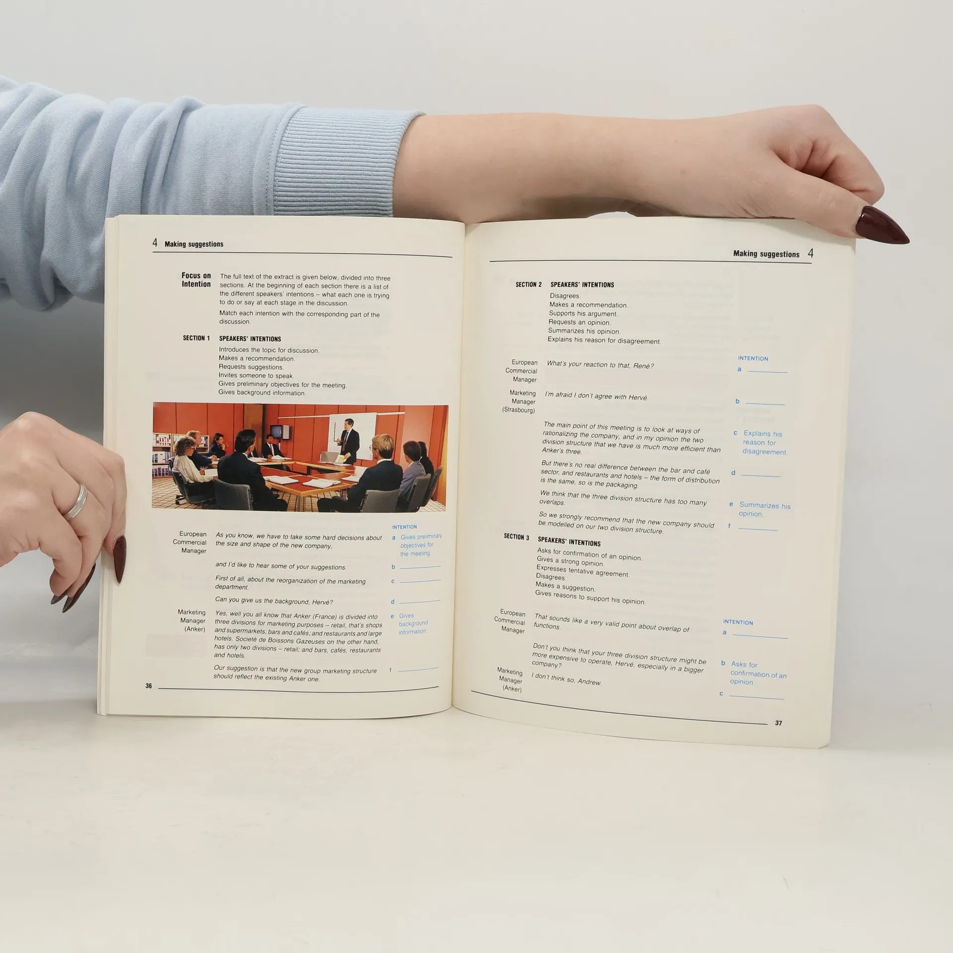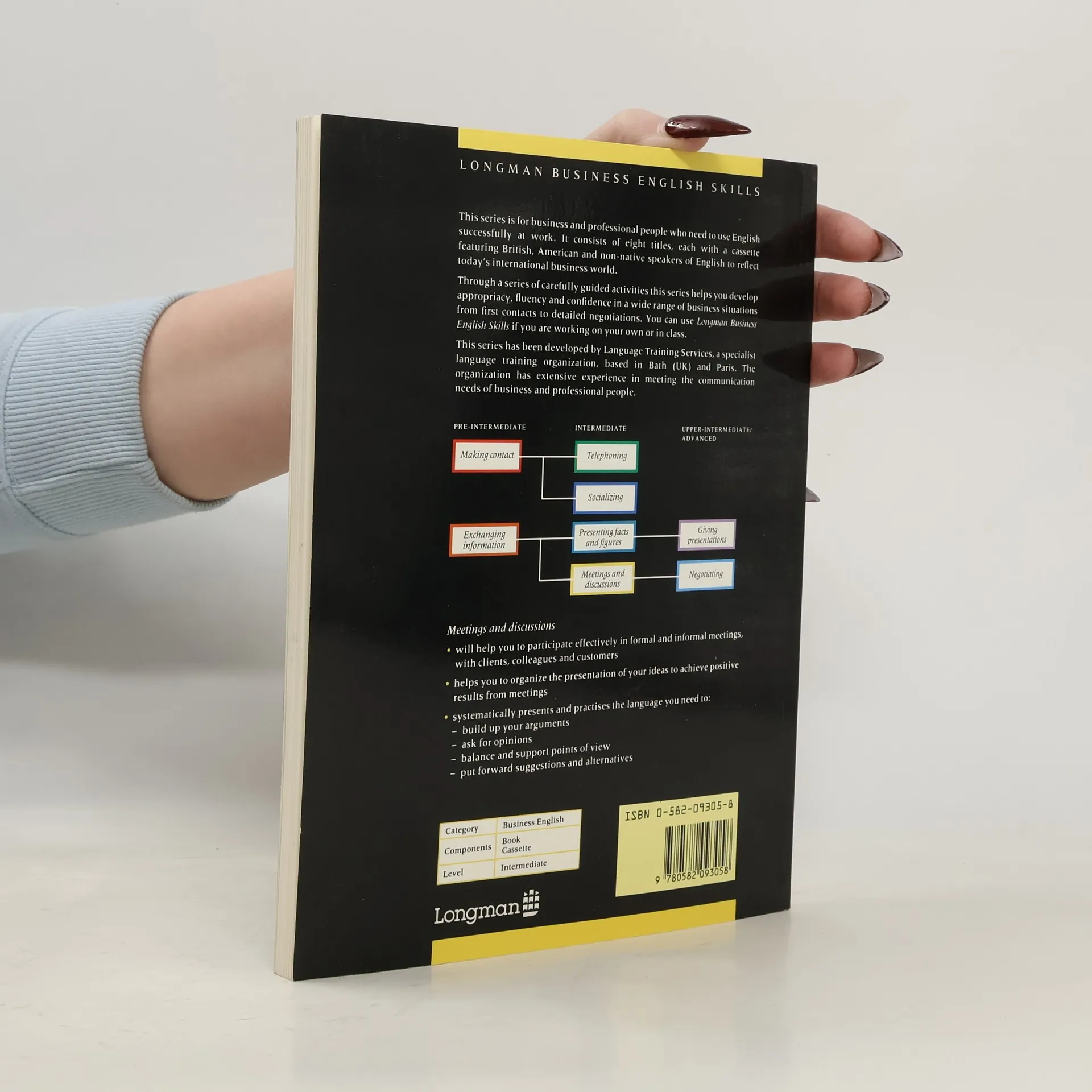 Enables the business person to participate effectively in both formal and informal meetings -- with colleagues, clients and customers. Language skills such as arguing and disagreeing, expressing opinions, interrupting politely, are included as well as organizational skills such as building up an argument, summarizing and concluding and controlling a meeting.