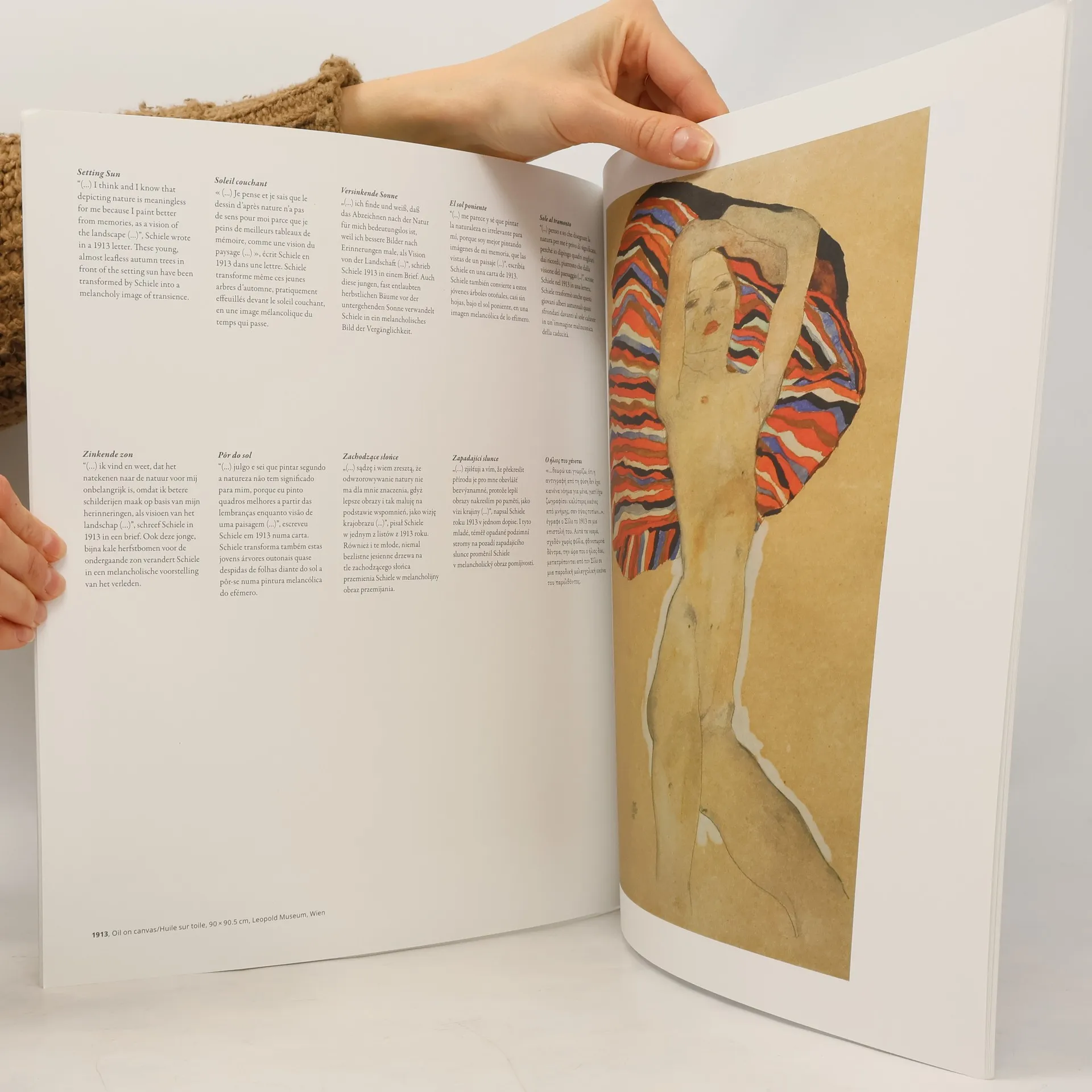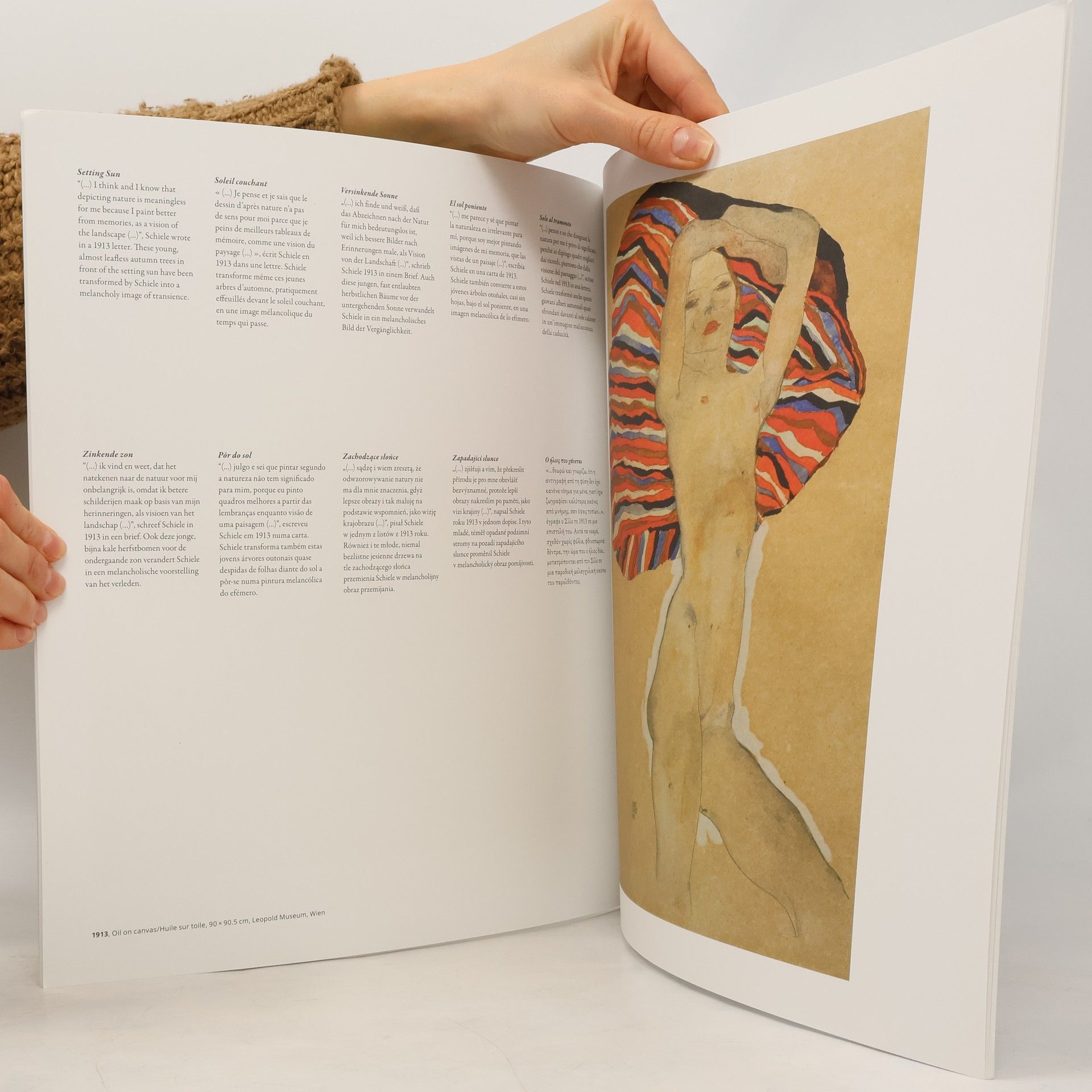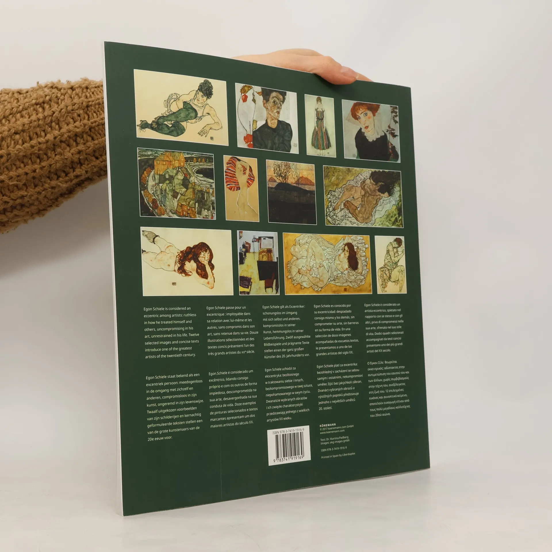 Egon Schiele platí za excentrika: bezohledný v zacházení se sebou samým i ostatními, nekompromisní umělec bez jakýchkoli zábran. Dvanáct vybraných obrazů a výstižných popisků představuje jednoho z největších umělců 20. století. Dvanáct reprodukcí, které mají na zadní straně uveden název, techniku a komentář v deseti jazykových mutacích. Jednotlivé listy lze snadno vyjmout a např. zapaspartovat.