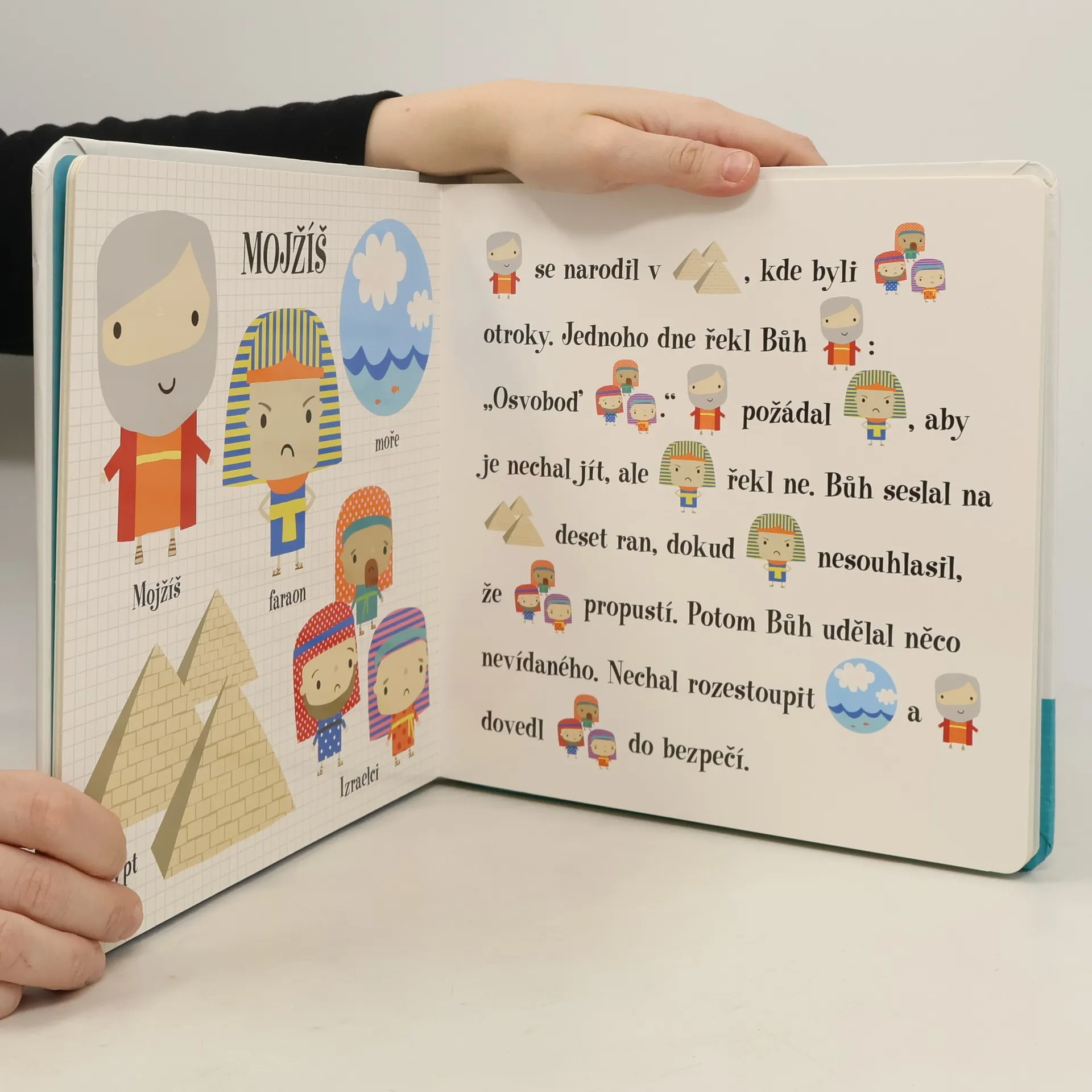 Čti a doplňuj – poslouchej příběhy, dívej se na obrázky a vypravuj, jak to bylo dál. Biblické příběhy jsou převyprávěny pomocí kombinace textu a ilustrací. Tato sbírka obsahuje nejznámější biblické příběhy ze Starého i Nového zákona. Klasické texty jsou pro děti převyprávěny poutavou formou, která je pomocí kombinace textu a obrázků vtahuje do příběhů a zapojuje do čtení. Ilustrovaná klíčová slova dětem pomáhají při pochopení. Díky jednoduchému textu, ve kterém se malí čtenáři snadno zorientují, je tato kniha ideální pro společné chvíle čtení dětí a rodičů. Seznamte se své děti se základy evropské kultury.