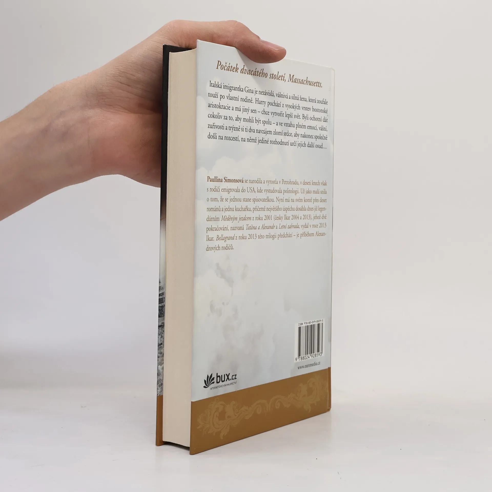 Počátek dvacátého století, Massachusetts. Italská imigrantka Gina je nezávislá, vášnivá a silná osobnost, která zoufale touží po vlastní rodině. Harry pochází z vysokých vrstev bostonské aristokracie a má jiný sen – chce vytvořit lepší svět. Byli ochotní dát cokoliv za to, aby mohli být spolu – a ve vztahu plném emocí, vášní, zuřivosti a trýzně si ti dva navzájem zlomí srdce, aby nakonec společně došli na rozcestí, na němž jediné rozhodnutí určí jejich další osud. Román klenoucí se přes dva kontinenty a čtyři desítky let z pera autorky Měděného jezdce.