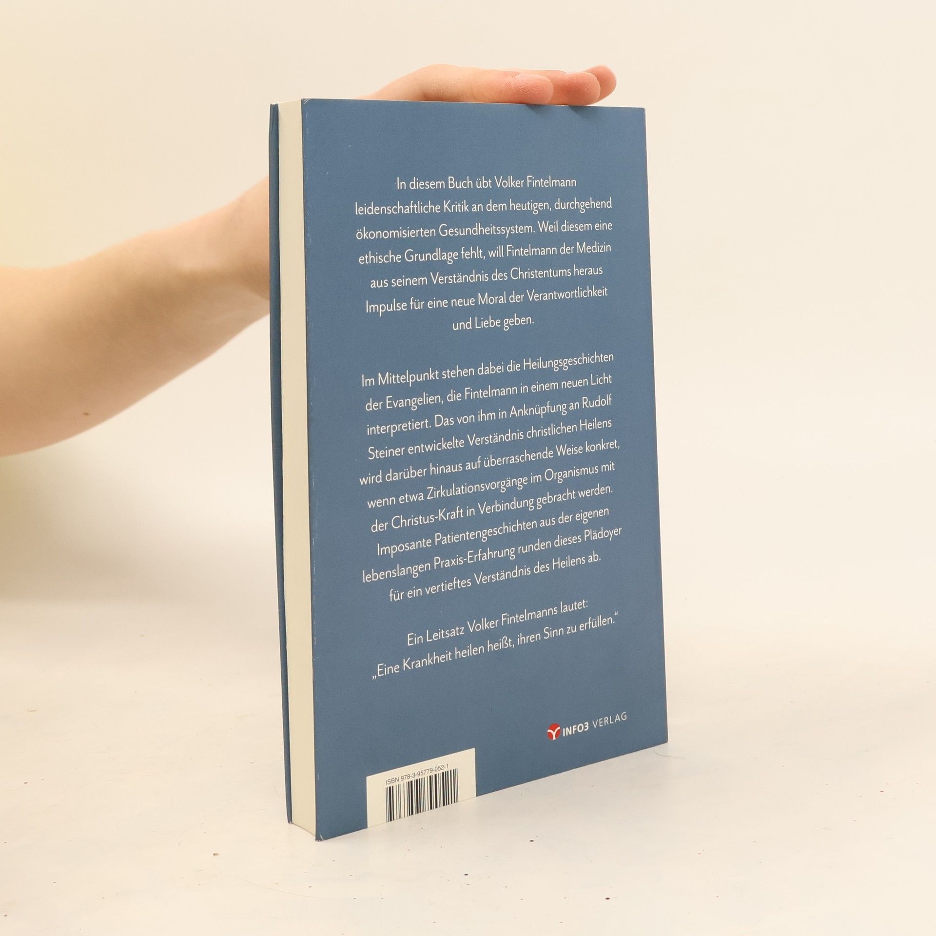 In diesem Buch übt Volker Fintelmann leidenschaftliche Kritik an dem heutigen, durchgehend ökonomisierten Gesundheitssystem. Weil diesem eine ethische Grundlage fehlt, will Fintelmann der Medizin aus seinem Verständnis des Christentums heraus Impulse für eine neue Moral der Verantwortlichkeit und Liebe geben. Im Mittelpunkt stehen dabei die Heilungsgeschichten der Evangelien, die Fintelmann in einem neuen Licht interpretiert. Das von ihm in Anknüpfung an Rudolf Steiner entwickelte Verständnis christlichen Heilens wird darüber hinaus auf überraschende Weise konkret, wenn etwa Zirkulationsvorgänge im Organismus mit der Christus-Kraft in Verbindung gebracht werden. Imposante Patientengeschichten aus der eigenen lebenslangen Praxis-Erfahrung runden dieses Plädoyer für ein vertieftes Verständnis des Heilens ab. Ein Leitsatz Volker Fintelmanns lautet: Eine Krankheit heilen heißt, ihren Sinn zu erfüllen.