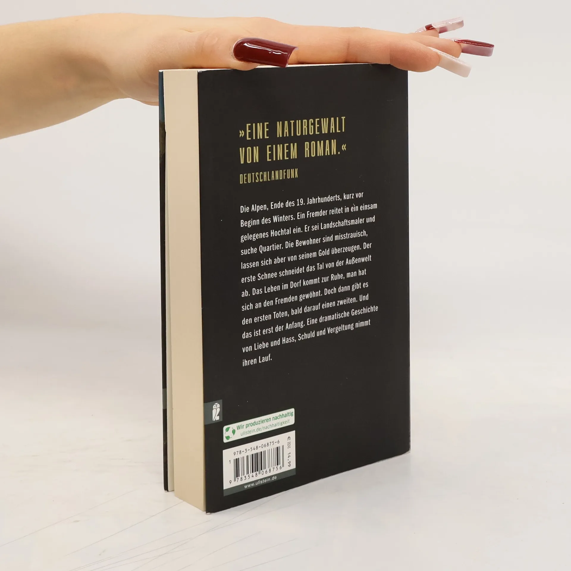 »Eine Naturgewalt von einem Roman« Deutschlandfunk Die Alpen, Ende des 19. Jahrhunderts, kurz vor Winterbeginn. Ein Fremder kommt in ein einsam gelegenes Hochtal. Er sei Maler und suche Quartier. Die Bewohner sind misstrauisch, lassen sich aber von seinem Gold überzeugen. Der erste Schnee schneidet das Tal von der Außenwelt ab. Das Leben im Dorf kommt zur Ruhe, man hat sich an den Fremden gewöhnt. Doch dann gibt es den ersten Toten, bald darauf einen zweiten. Eine dramatische Geschichte von Liebe und Hass, Schuld und Vergeltung nimmt ihren Lauf.