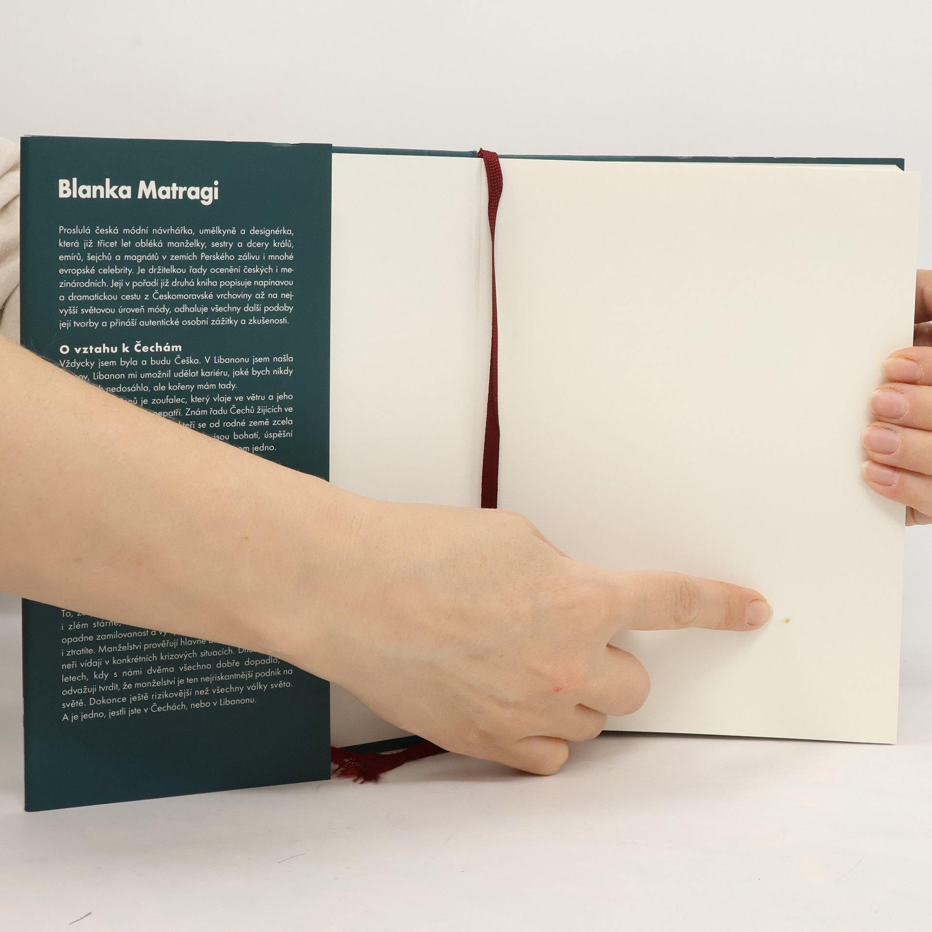 Proslulá oděvní výtvarnice je známá především svým haute couture pro manželky, sestry a dcery králů, emírů, šejchů a magnátů v zemích Perského zálivu. Její již druhá kniha přináší, kromě vzpomínek na napínavou a dramatickou třicetiletou cestu z Českomoravské vrchoviny až na nejvyšší světovou úroveň módy, také otevřenou výpověď o událostech při jejích návratech do vlasti a přibližuje nejnovější oblasti její tvorby.