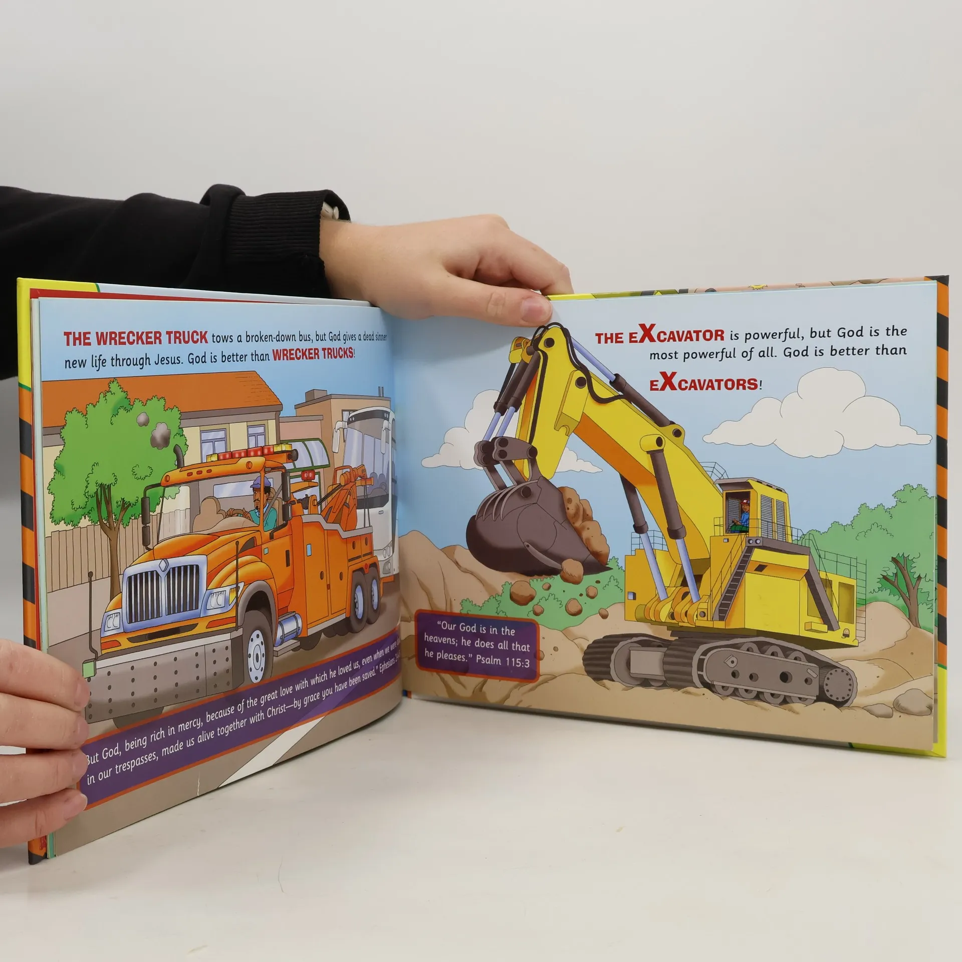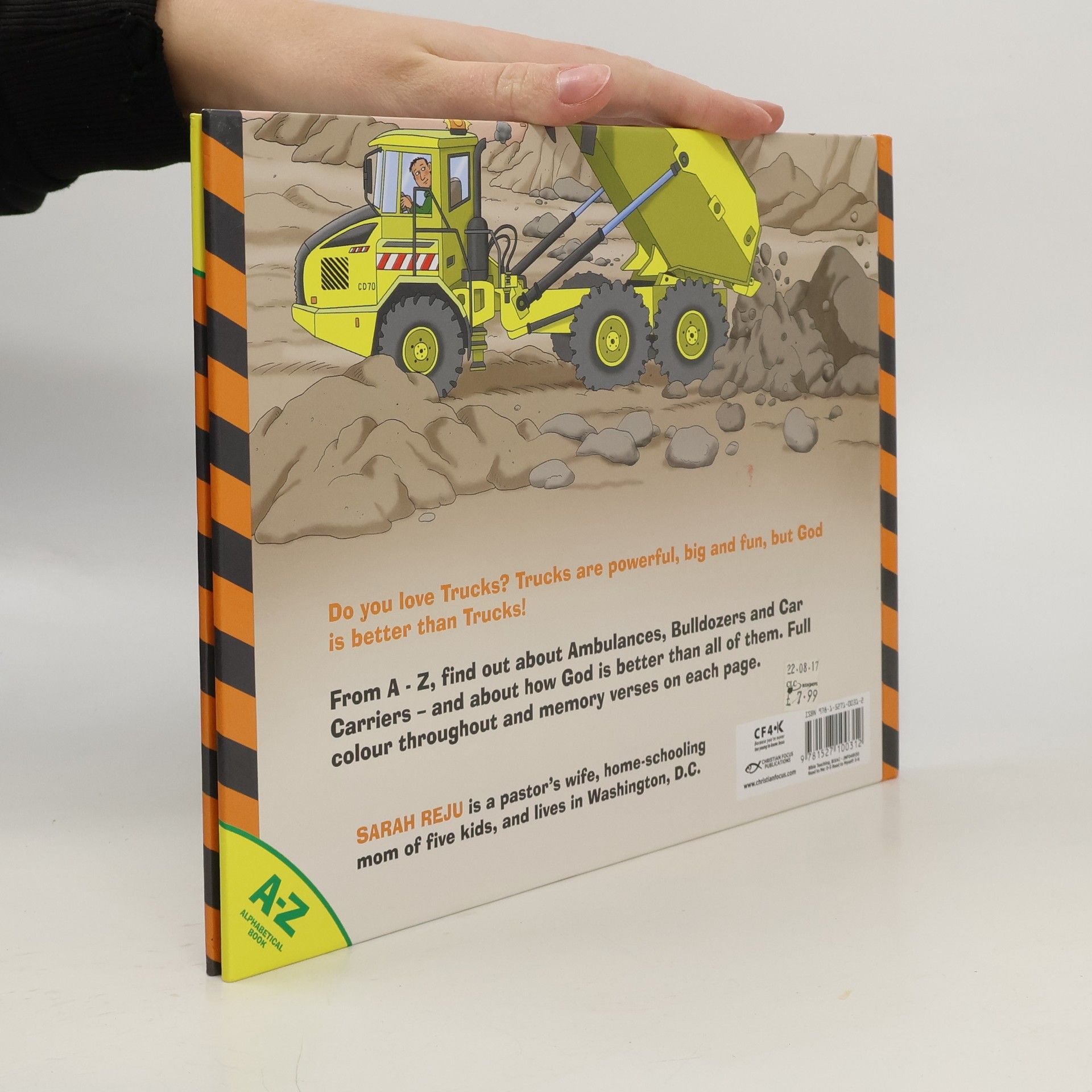 Do you love Trucks? Trucks are powerful, big and fun, but God is better than Trucks! From A - Z, find out about Ambulances, Bulldozers and Car Carriers - and about how God is better than all of them. Full colour throughout and memory verses on each page.