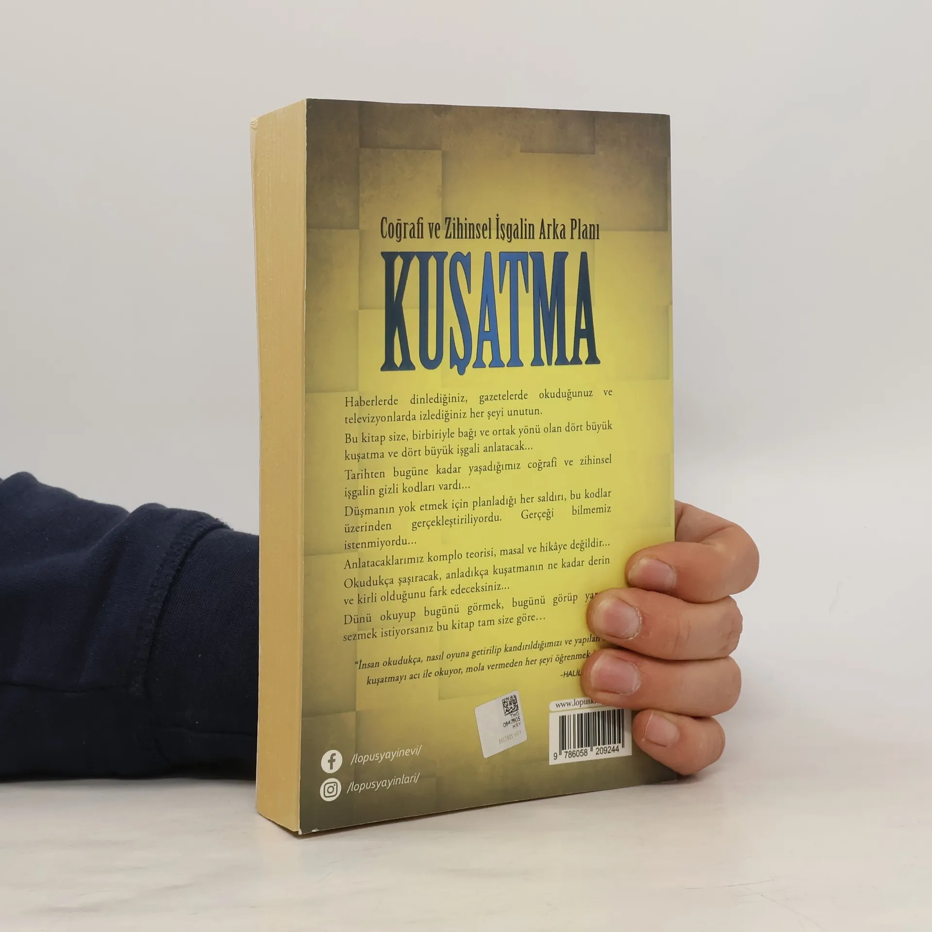 Haberlerde dinlediğiniz, gazetelerde okuduğunuz ve televizyonlarda izlediğiniz her şeyi unutun.Bu kitap size, birbiriyle bağı ve ortak yönü olan dört büyük kuşatma ve dört büyük işgali anlatacak...Tarihten bugüne kadar yaşadığımız coğrafi ve zihinsel işgalin gizli kodları vardı...Düşmanın yok etmek için planladığı her saldırı, bu kodlar üzerinden gerçekleştiriliyordu. Gerçeği bilmemiz istenmiyordu...Anlatacaklarımız komplo teorisi, masal ve hikâye değildir...Okudukça şaşıracak, anladıkça kuşatmanın ne kadar derin ve kirli olduğunu fark edeceksiniz...Dünü okuyup bugünü görmek, bugünü görüp yarını sezmek istiyorsanız bu kitap tam size göre…‘’İnsan okudukça, nasıl oyuna getirilip kandırıldığımızı ve yapılan zihinsel kuşatmayı acı ile okuyor, mola vermeden her şeyi öğrenmek istiyor.’’-HALİL YAŞAR KOLLU-(Tanıtım bülteninden)