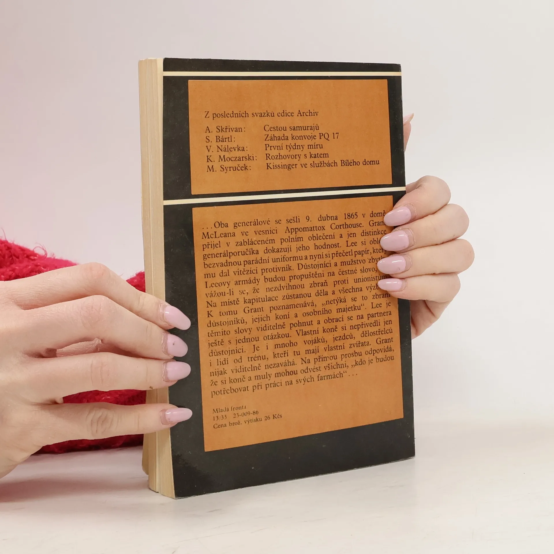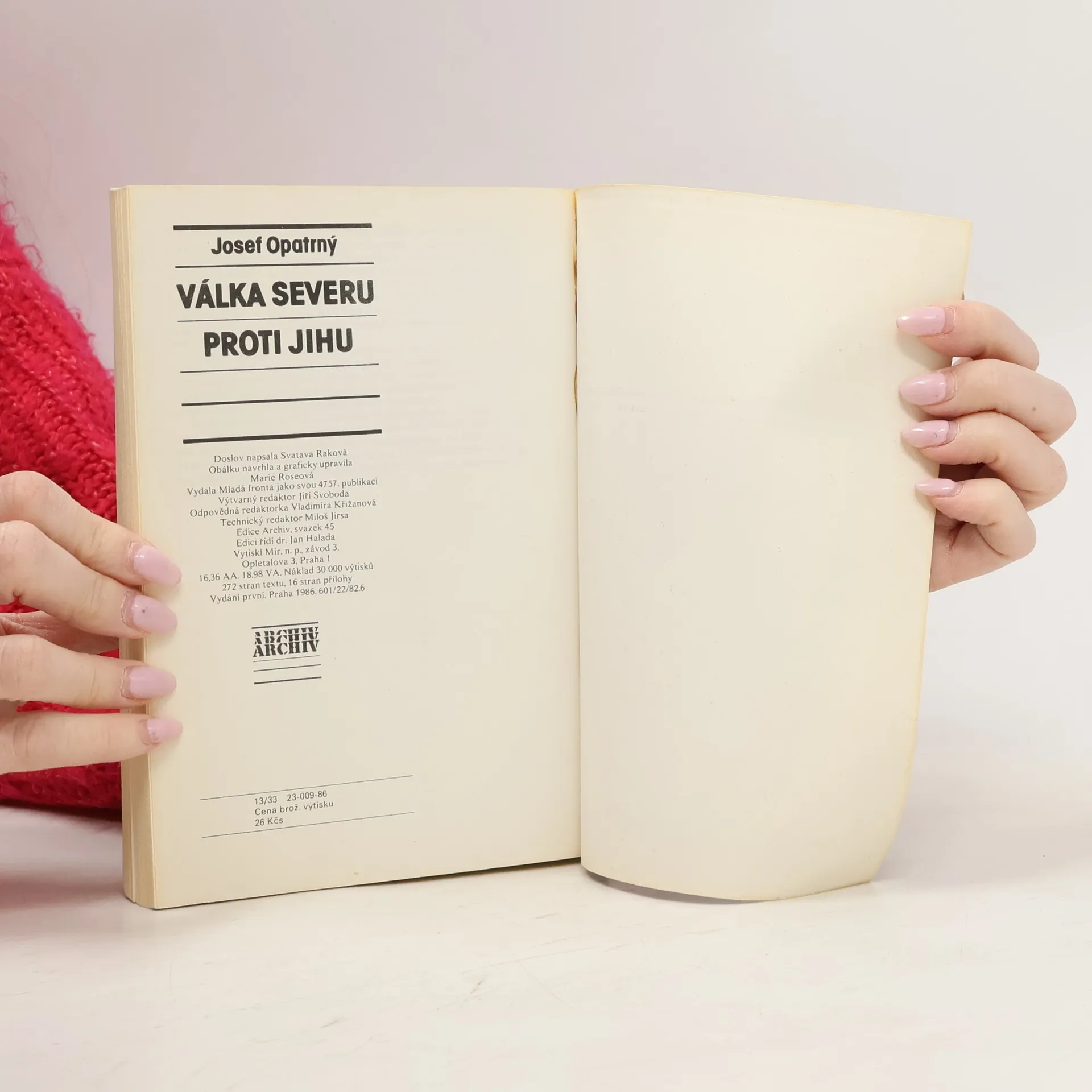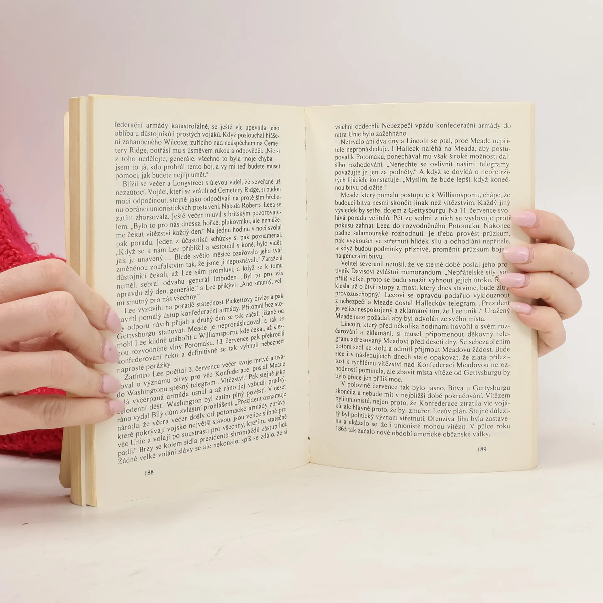 Kniha není pouze historií občanské války ve Spojených státech. Velmi zevrubně probírá "nevojenské" stránky krvavého knofliktu, který více než před sto lety upoutal pozornost světové veřejnosti, jímž navíc skončila závislost Spojených států na Evropě a její výsledek poznamenal celé světové dějiny pro celé následující století. Tato občanská válka byla katalyzátorem řady procesů, které by se jinak těžko udály. Snad k nejzávažnějším náleží zákon o domovinách, podepsaný Abrahamem Lincolnem, který je dodnes charakterizován jako nejdůležitější zákon amerických dějin. - Doslov Svatoslava Raková. První vydání.