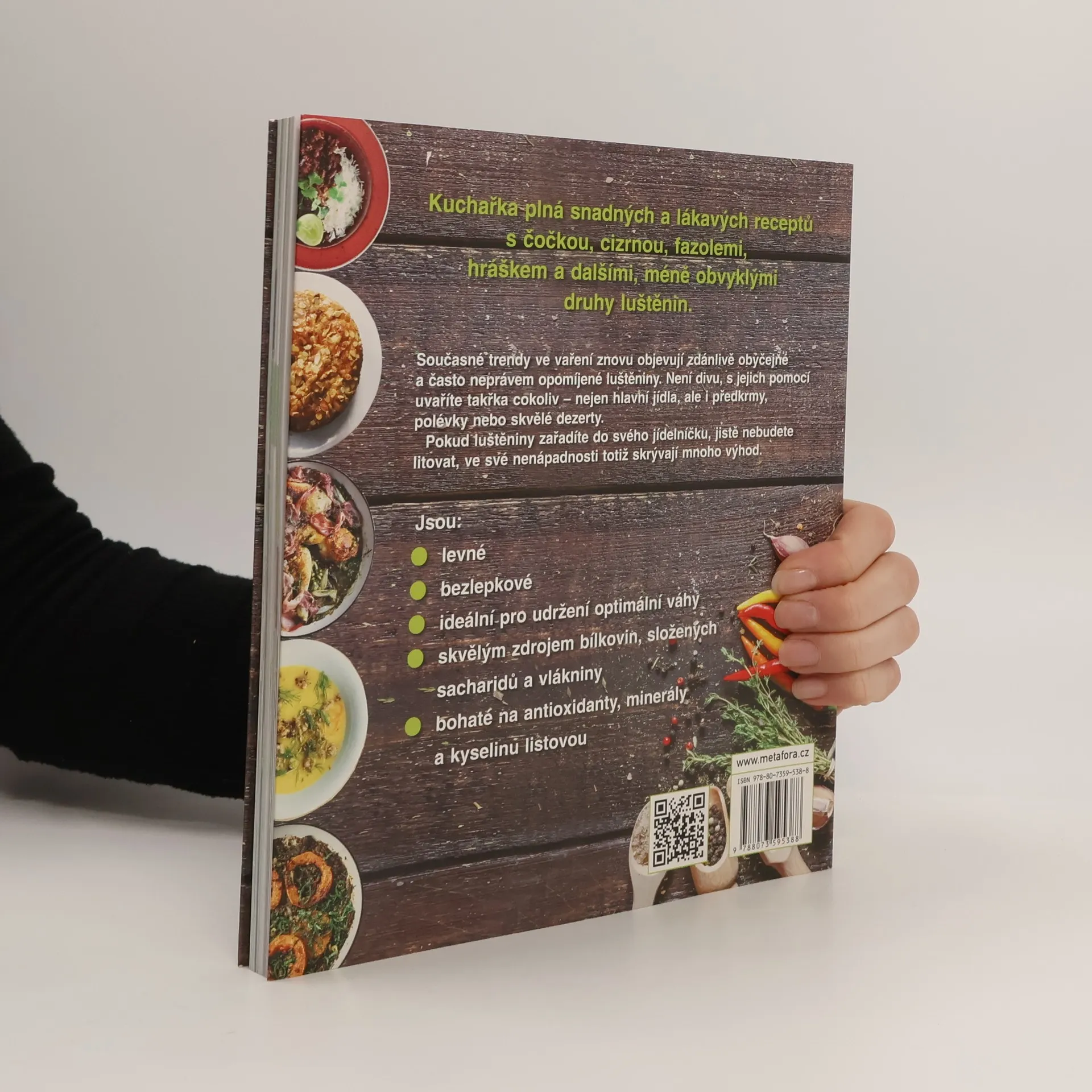 Kuchařka plná snadných a lákavých receptů s čočkou, cizrnou, fazolemi, hráškem a dalšími, méně obvyklými, druhy luštěnin. Současné trendy ve vaření znovu objevují zdánlivě obyčejné a často neprávem opomíjené luštěniny. Není divu, s jejich pomocí uvaříte takřka cokoliv - nejen hlavní jídla, ale i předkrmy, polévky nebo skvělé dezerty. Pokud luštěniny zařadíte do svého jídelníčku, jistě nebudete litovat, ve své nenápadnosti totiž skrývají mnoho výhod. Jsou: •levné •bezlepkové •ideální pro udržení optimální váhy •skvělým zdrojem bílkovin, složených sacharidů a vlákniny •bohaté na antioxidanty, minerály a kyselinu listovou Autorka na úvod představuje různé druhy luštěnin i ideální způsob jejich přípravy. Kuchařka je dále přehledně rozdělena do šesti kapitol podle barvy luštěnin: bílé – černé – zelené – žluté – červené – hnědé. Najdete mezi nimi klasické známé druhy jako hrášek, čočku či cizrnu, ale i exotické luskoviny jako fazolky edamame, adzuki či mungo nebo třeba černou čočku beluga. Obohaťte si jídelníček o množství barev i chutí!