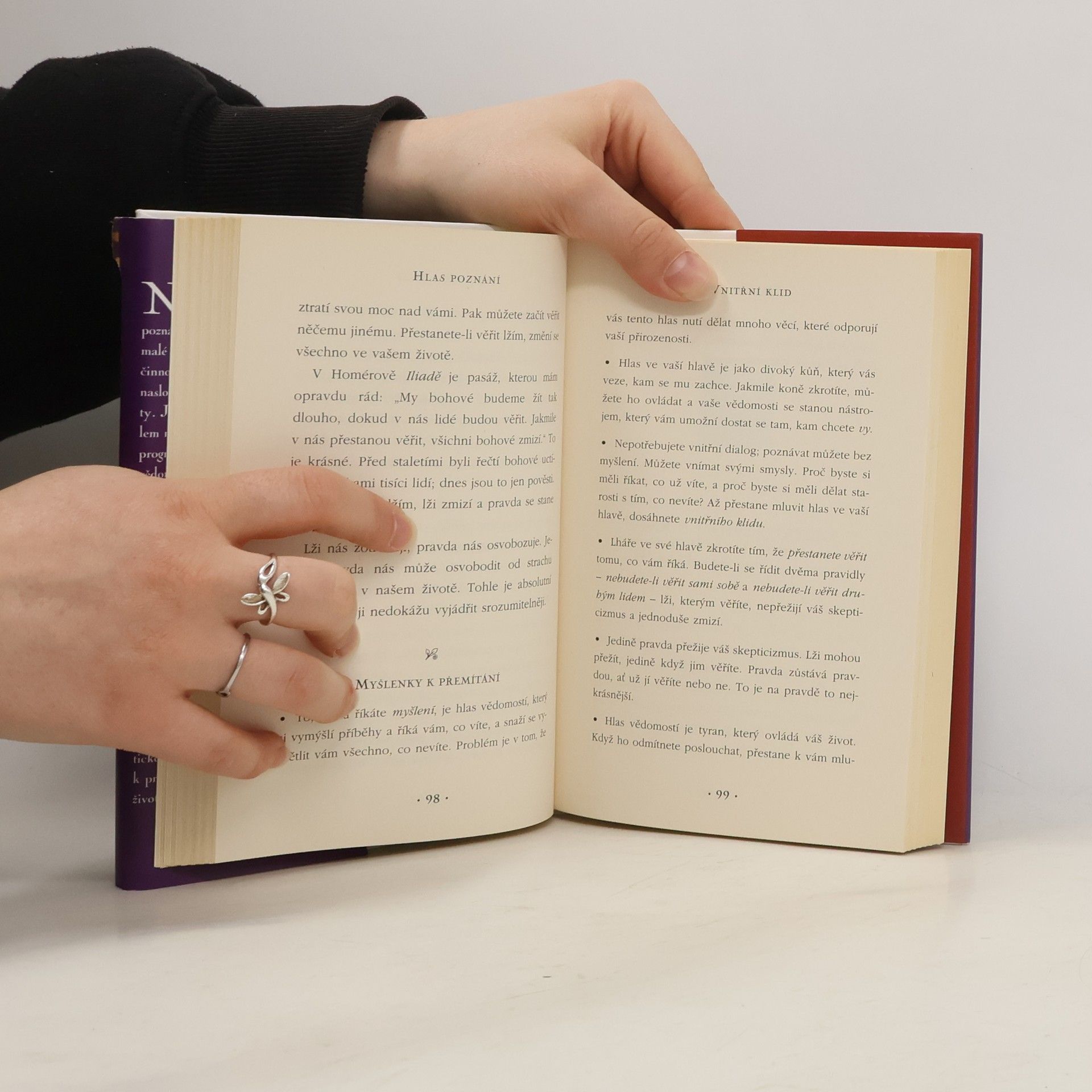 Než se naučíme mluvit, je naší přirozeností milovat a být šťastní. Jako malé děti jsme naprosto autentičtí, protože jsou naše činnosti řízeny instinktem a emocemi. Jakmile se však naučíme jazyk, lidé kolem nás upoutají naši pozornost a vštěpují nám své vědomosti. Don Miguel Ruiz nám ukazuje, jak se přes tyto nepravdivé a nesprávné vědomosti dostat k autentickému tichému hlasu pravého já a najít tak svůj klid.