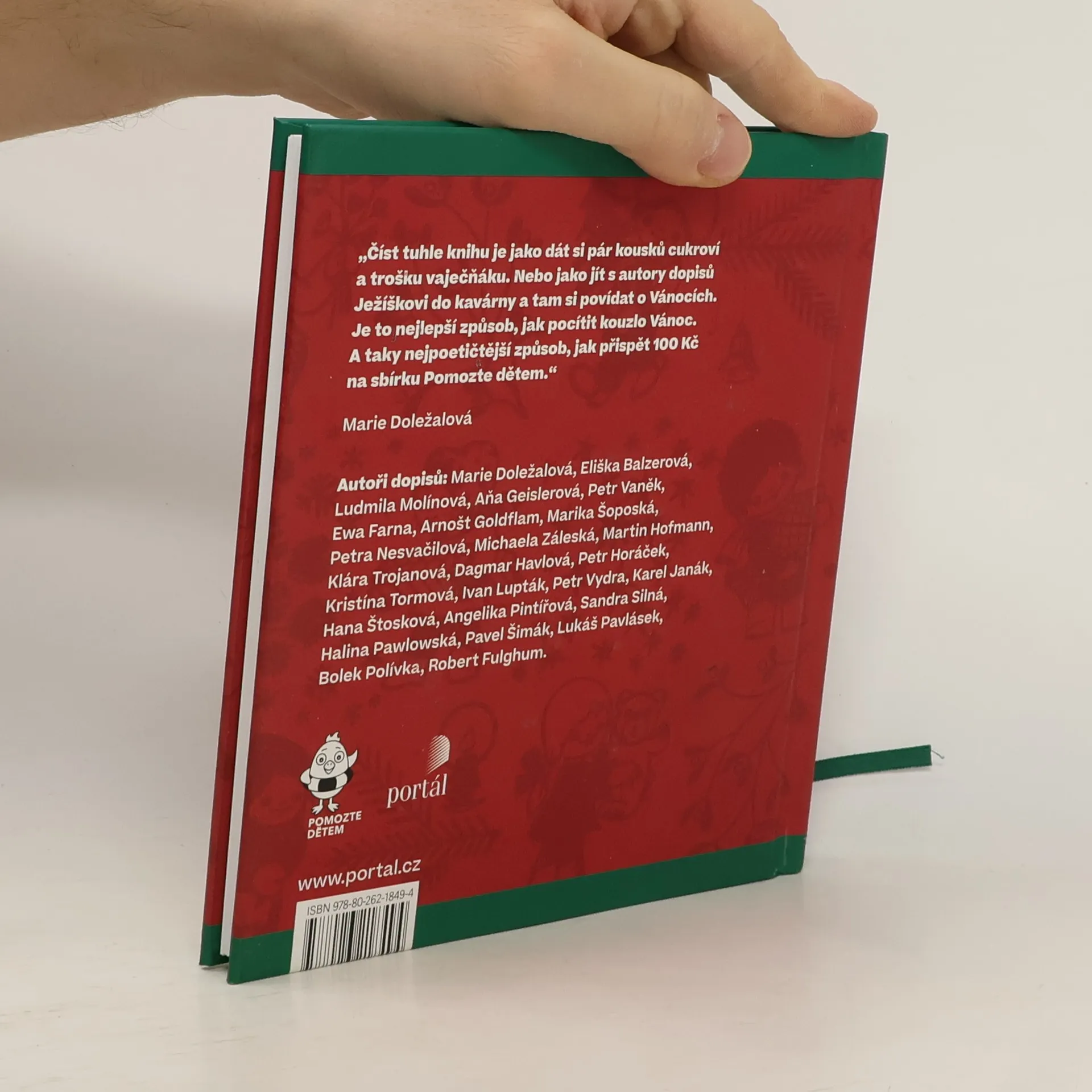 Předvánoční knížka, která přináší hned několikerou radost. Přečtete si dopisy, které Ježíškovi napsaly známé osobnosti jako Eliška Balzerová, Ewa Farna, Robert Fulghum, Dagmar Havlová, Bolek Polívka a řada dalších. Jsou to dopisy plné humoru, moudrosti, bilancování, sarkasmu i laskavosti a stanou se krásným vánočním dárkem. Navíc přispějete jasnými 100 Kč nadaci Pomozte dětem. Dejte knižní dárek, který potěší a obohatí vás, vaše blízké i ty, kteří to skutečně potřebují. Do knihy přispěli: Marie Doležalová, Eliška Balzerová, Ludmila Molínová, Aňa Geislerová, Petr Vaněk, Ewa Farna, Arnošt Goldflam, Marika Šoposká, Petra Nesvačilová, Michaela Záleská, Martin Hofmann, Klára Trojanová, Dagmar Havlová, Petr Horáček, Kristína Tormová, Ivan Lupták, Petr Vydra, Karel Janák, Hana Gécová, Angelika Pintířová, Sandra Silná, Halina Pawlowská, Pavel Šimák, Lukáš Pavlásek, Bolek Polívka, Robert Fulghum. Z každé prodané knihy jde 100 Kč na sbírku Pomozte dětem!