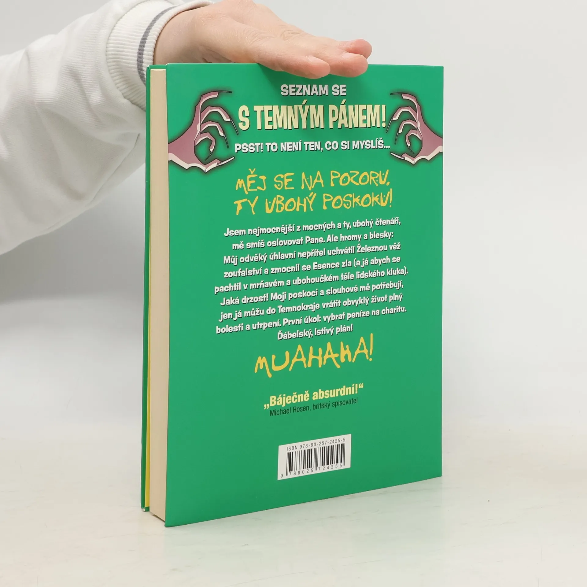 Známý britský spisovatel Michael Rosen, porotce soutěže Cena Roalda Dahla, o prvním svazku nyní již čtyřdílné série Temný pán pochvalně prohlásil, že „je to úžasně bláznivá, originální verze mnohokrát použitého motivu o mimozemšťanovi, jenž se ocitl na Zemi“. Temný pán se tedy opět vrací k českým čtenářům s novým, třeskutě zábavným a samozřejmě náležitě zlověstným příběhem! A takto čtvrtý díl popisuje sám Temný pán: Jsem nejmocnější z mocných a ty, ubohý čtenáři, mě smíš oslovovat Pane. Ale hromy a blesky: Můj odvěký úhlavní nepřítel uchvátil Železnou věž zoufalství a zmocnil se Esence zla (a já abych se pachtil v mrňavém a ubohoučkém těle lidského kluka). Jaká drzost! Moji poskoci a slouhové mě potřebují, jen já můžu do Temnokraje vrátit obvyklý život plný bolesti a utrpení. První úkol: vybrat peníze na charitu. Ďábelský, lstivý plán! Muahaha!