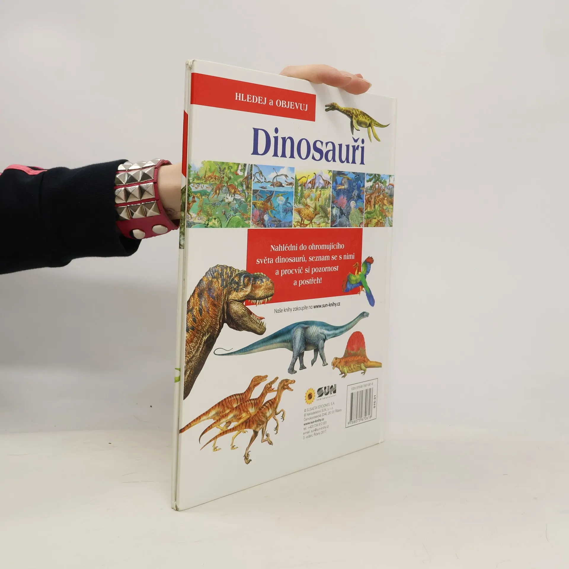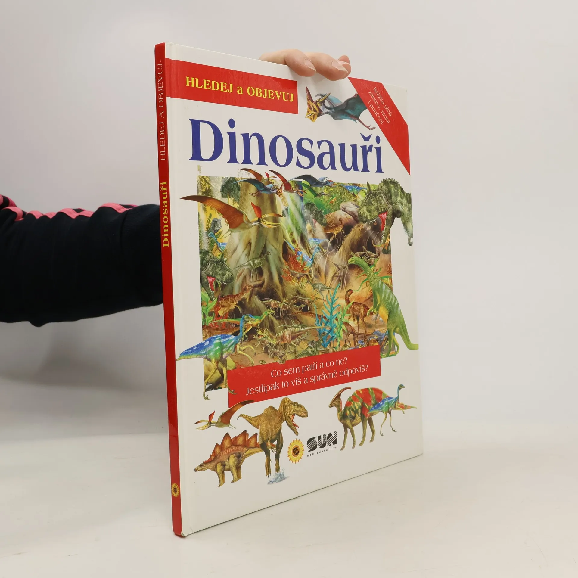 Krásná kniha plná hledání a překvapení. Děti se dozvědí spoustu zajímavých informací o pravěku, dinosaurech i zkáze tohoto období. Na obrázcích pak vyhledají předměty, které tam nepatří, ale také ty, jež se světa dinosaurů týkají.