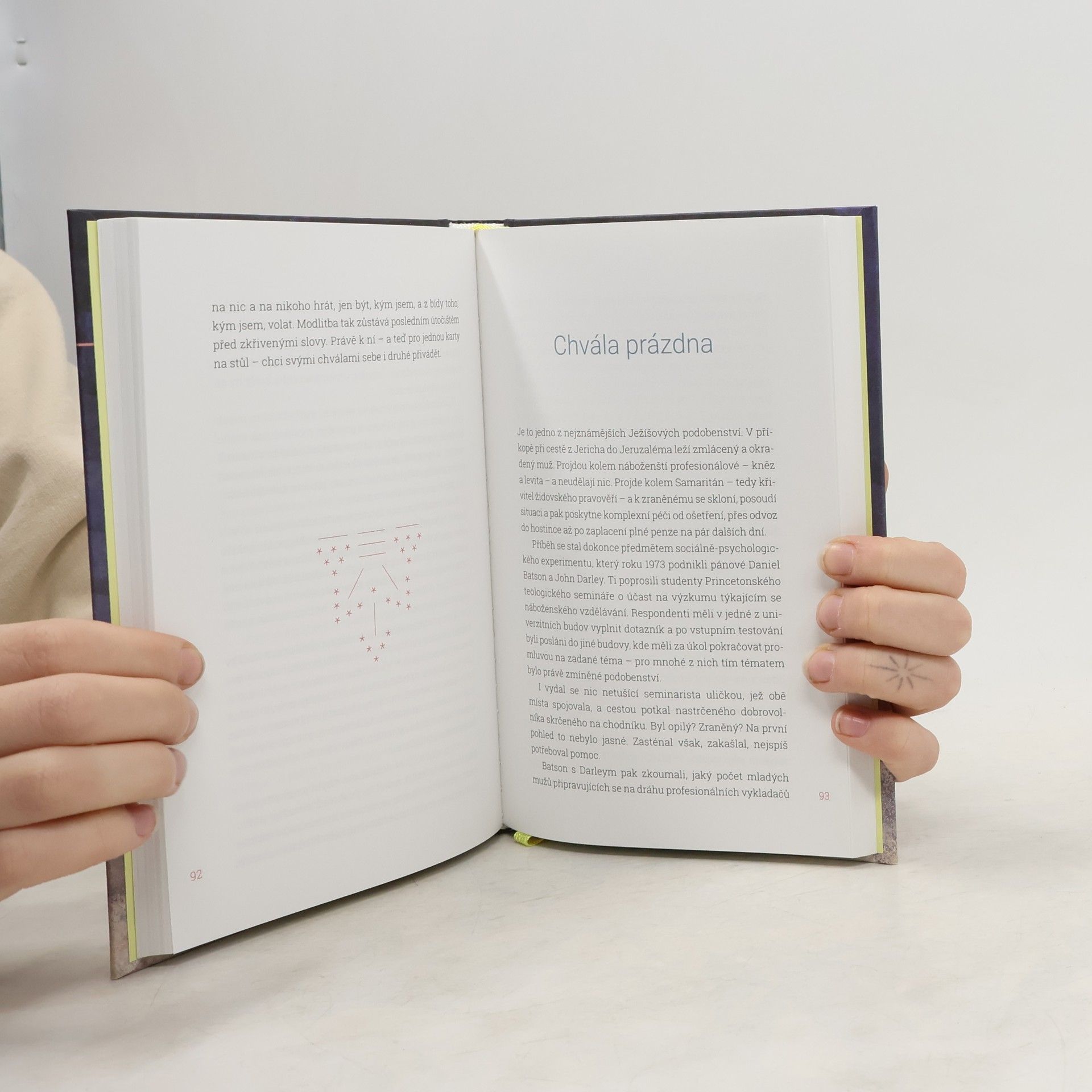 Jsou skutečnosti, které vyvolávají všeobecný potlesk, a skutečnosti odvržené na okraj, které nikdo nepochválí. Právě k nim, na periferii, se vydává padesát krátkých statí velebících mimo jiné kněžské žvásty, zasmušilé lidi, vánoční bahno, rutinu, alkohol, čekání, zaostávání,politickou pasivitu nebo manželku svatého Petra.