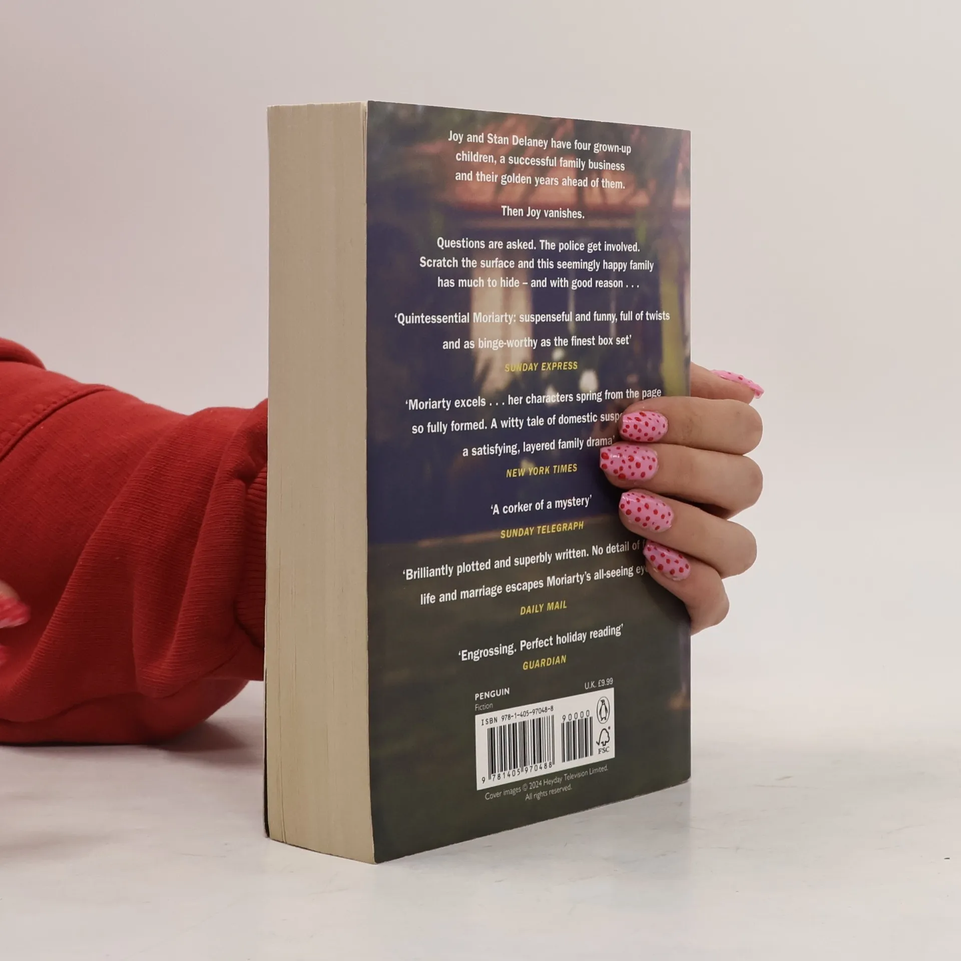 The Delaney family love one another dearly - it's just that sometimes they want to murder each other ... Joy Delaney and husband Stan have done well. Four wonderful grown-up children. A family business to envy. The golden years of retirement ahead of them. So when Joy Delaney vanishes - no note, no calls, her bike missing - it's natural that tongues will wag. How did Stan scratch his face? And who was the stranger who entered and suddenly left their lives? What are they all hiding? But for the Delaney children there is a much more terrifying question: did they ever know their parents at all?[Bokinfo].