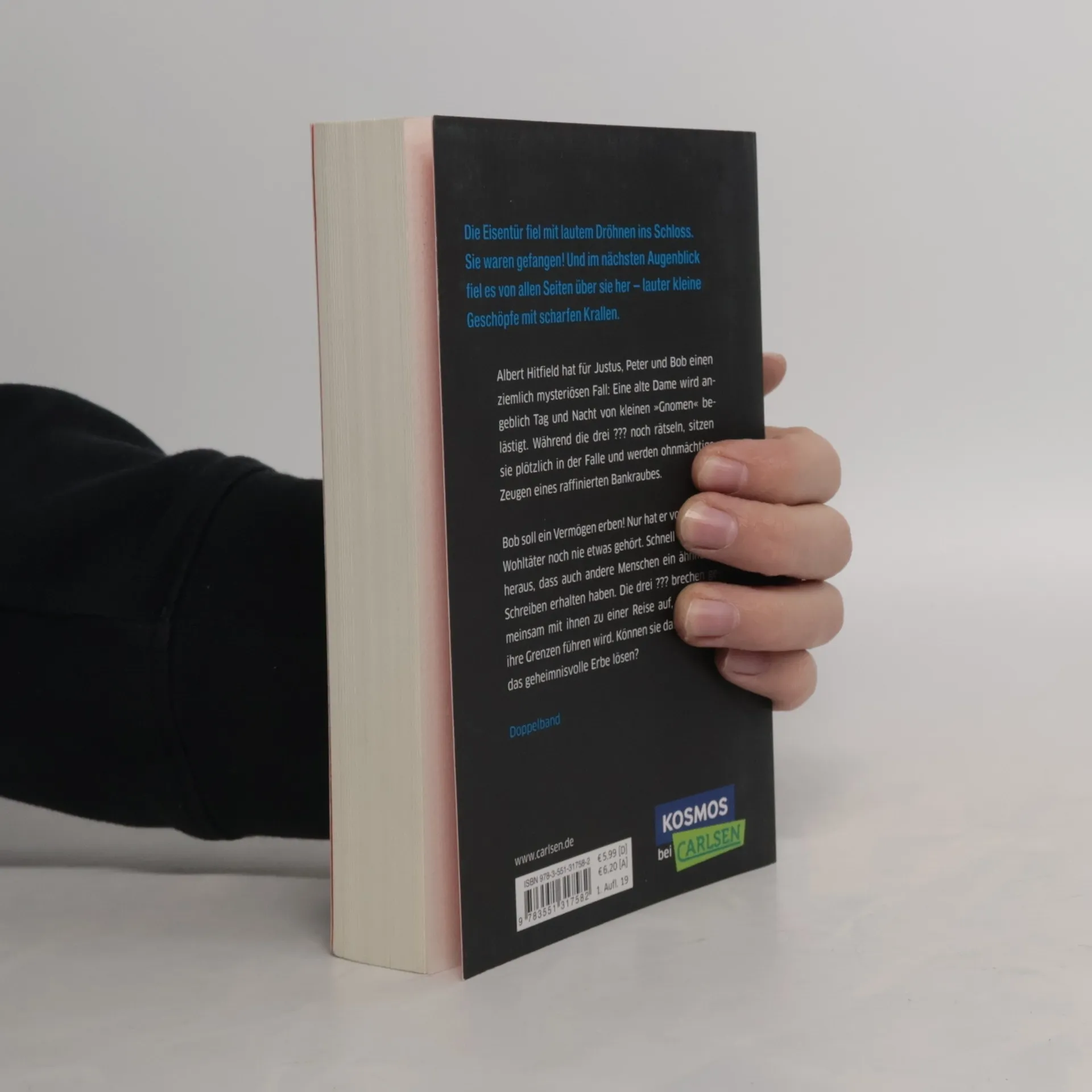 Die drei ??? und der verschwundene Schatz Albert Hitfield hat für Justus, Peter und Bob einen ziemlich mysteriösen Fall: Eine alte Dame wird angeblich Tag und Nacht von kleinen »Gnomen« belästigt. Während die drei ??? noch rätseln, sitzen sie plötzlich in der Falle und werden ohnmächtige Zeugen eines raffinierten Bankraubes. Die Rache des Untoten Bob soll ein Vermögen erben! Nur hat er von seinem Wohltäter noch nie etwas gehört. Schnell stellt sich heraus, dass auch andere Menschen ein ähnliches Schreiben erhalten haben. Die drei ??? brechen gemeinsam mit ihnen zu einer Reise auf, die sie an ihre Grenzen führen wird. Können sie das Rätsel um das geheimnisvolle Erbe lösen? Doppelter Lesespaß – zwei spannende Geschichten in einem Doppelband!