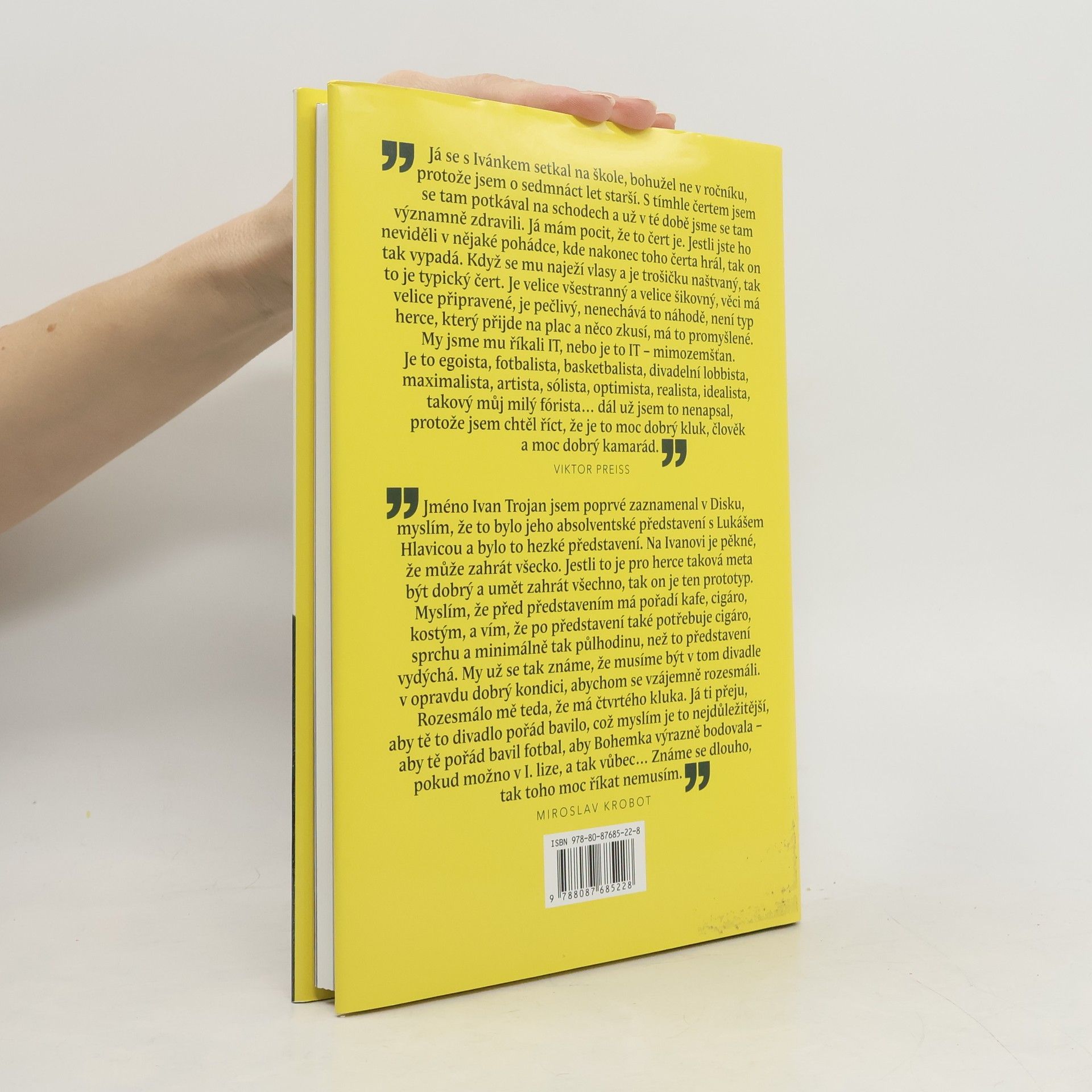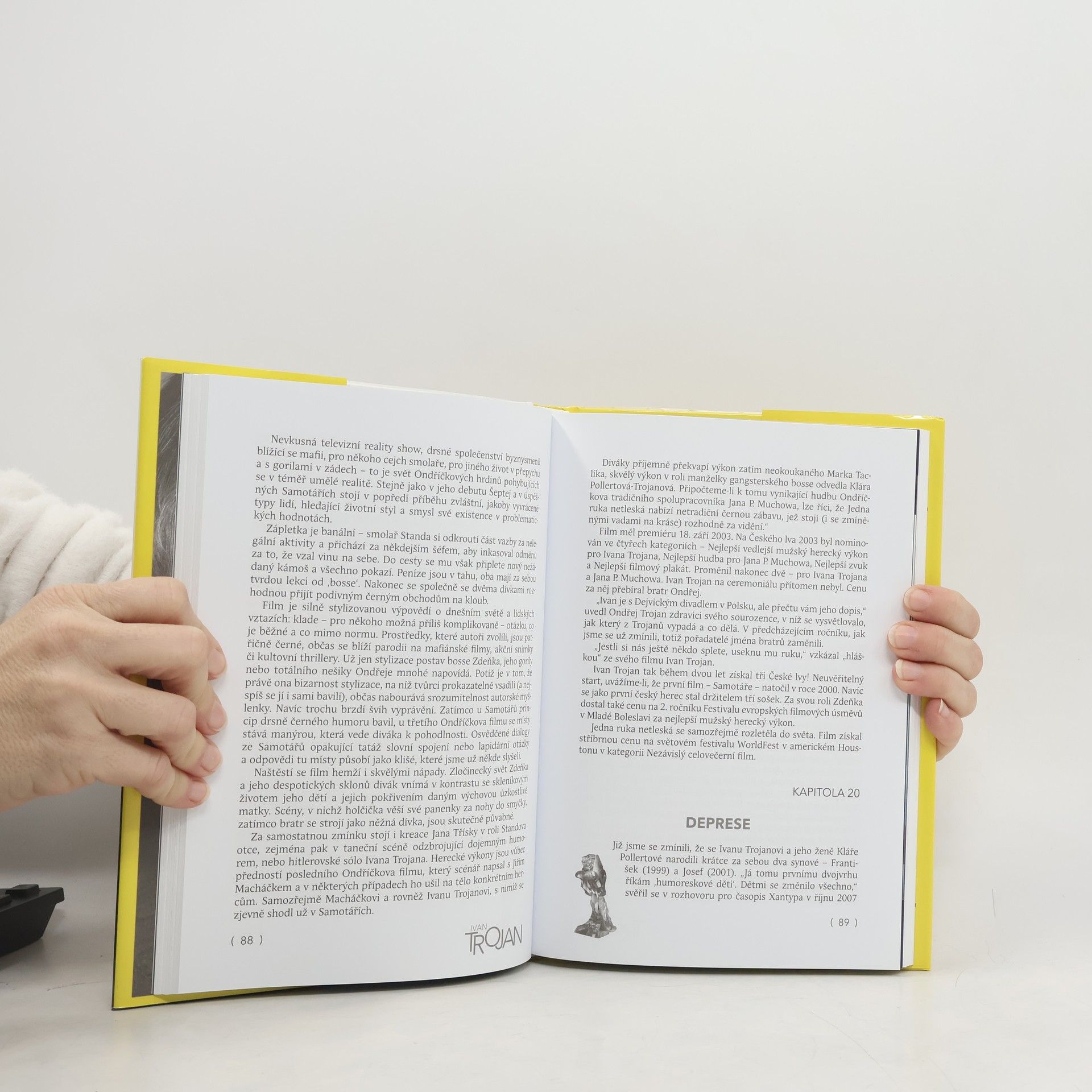 Výjimečná kniha vychází k padesátým narozeninám českého herce Ivana Trojana, který je unikátním umělcem. Pochází z herecké rodiny, avšak k herectví se rozhodl až před maturitou na sportovním gymnáziu, kde se věnoval sportu, zejména basketbalu. Po absolvování DAMU se rozhodl pro Realistické divadlo, kde podepsal petici za propuštění Václava Havla a byl za to potrestán. Po revoluci přijal angažmá ve Vinohradském divadle, kde strávil sedm let, než přešel do Dejvického divadla, které se stalo nejprogresivnějším divadlem současnosti. Až ve třiceti pěti letech natočil svůj první film, který ho katapultoval mezi uznávané herce. Je nositelem pěti Českých lvů a dalších prestižních ocenění. I přes náročnosti hereckého života si vzal herečku Kláru Pollertovou, s níž má čtyři syny. Jejich vztah prošel těžkou zkouškou kvůli Klářině chronické nemoci, ale zůstal silný. Ivan Trojan je také vášnivým fanouškem Bohemians 1905, pomáhal klubu a dokonce si zahrál v ligovém utkání. Patří k nejlepším hercům své generace a autorka jeho biografie jej představuje citlivě a s hlubokým porozuměním.