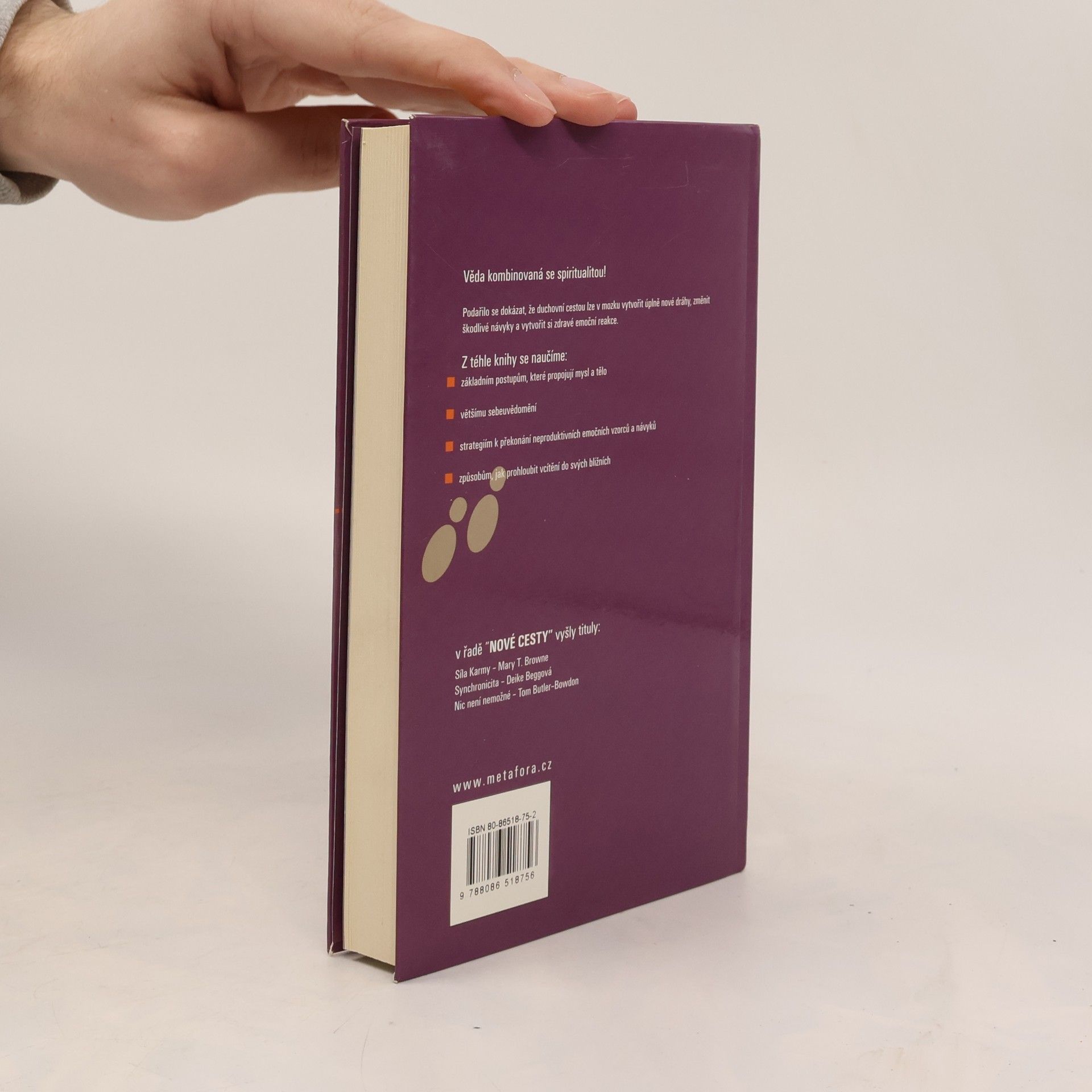 Praktické kroky k dosažení duševní rovnováhy. Převratná práce vycházející ze slavné Emoční inteligence Daniela Golemana. Věda kombinovaná se spiritualitou! Podařilo se dokázat, že duchovní cestou lze v mozku vytvořit úplně nové dráhy, změnit škodlivé návyky a vytvořit si zdravé emoční reakce. Z této knihy se naučíte: * základním postupům, které propojují mysl a tělo * většímu sebeuvědomění * strategiím k překonání neproduktivních emočních vzorců a návyků * způsobům, jak prohloubit vcítění se do svých bližních