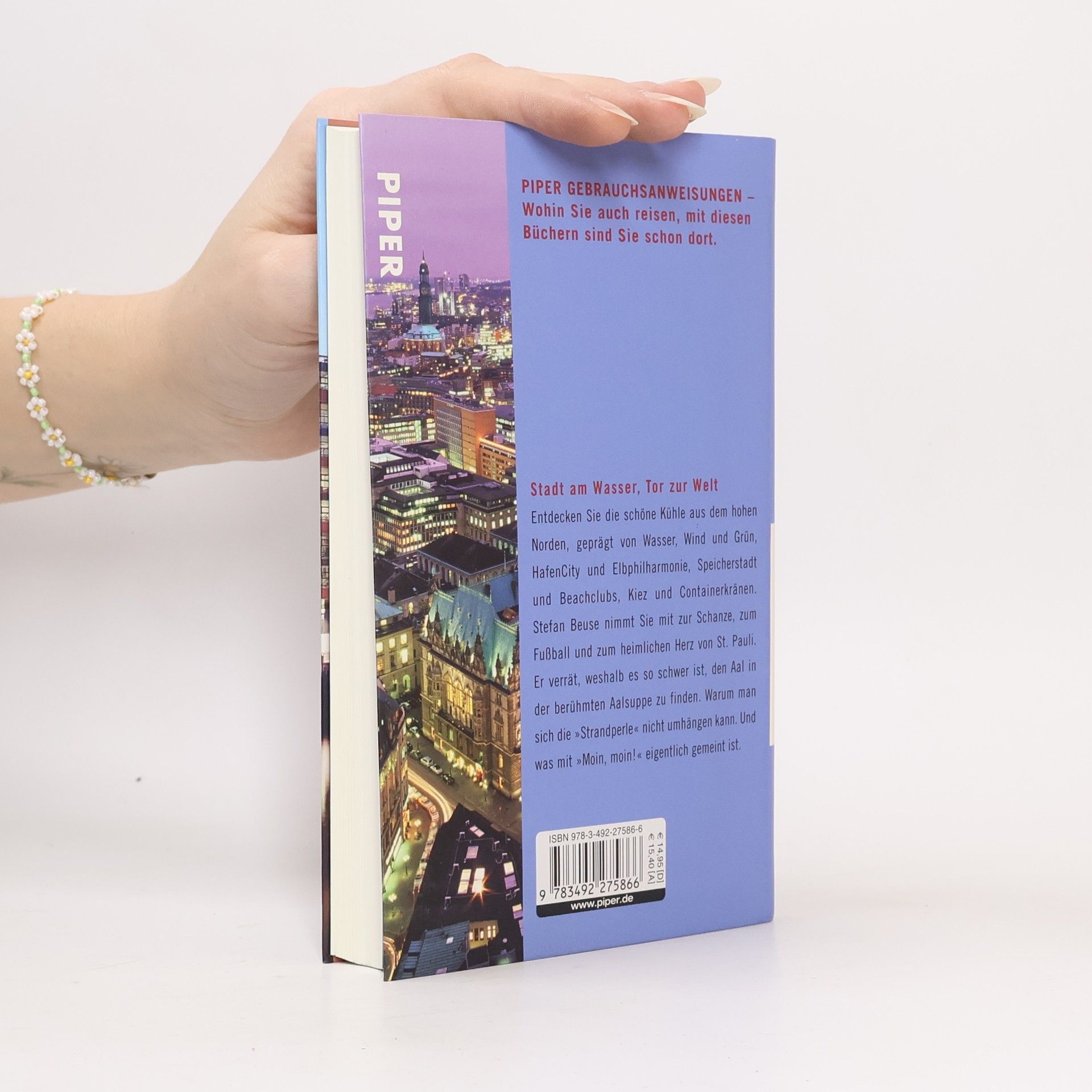 \"Was Sie hier in den Händen halten, ist also kein Reiseführer, sondern eine Reise.\" Stefan Beuse macht dem Leser am Anfang der Lektüre klar, um was für ein Büchlein es sich hier handelt. Der junge Autor ist kein gebürtiger Hamburger. Aber als er als Jugendlicher zum ersten Mal in die Hansestadt kommt, durch den Elbtunnel fährt und dann \"eine Welt aus Wasser, Wind und Barbourjacken, aus rotem Backstein und prunkvollen Villen, aus Business-Tempeln und dem Geruch von Teer und Fisch\" erblickt, verliebt er sich unsterblich in die Stadt an der Elbe -- und lebt auch heute noch dort. Der Autor zeigt das Herz der Hanseaten. In sechzehn Stationen folgt ihm der Leser auf seinen Wegen und Gedanken durch die Stadt, verbringt eine Nacht auf der Reeperbahn, einen frühen Morgen am Fischmarkt, einen Tag im Tierpark, macht einen Zwischenstopp beim abendlichen Cocktailtrinken mit Werbern und Medienleuten in der Kneipe \"Die Brücke\". In zwei Hamburger Geschichten erzählt der Autor in seinem äußerst unterhaltsamen Erzählstil Anekdoten aus seinem Leben. Fazit: Ob Hamburger oder nicht, lesen Sie dieses Büchlein. Es lohnt sich, denn Sie werden eine große deutsche Stadt näher kennen, verstehen und vielleicht auch ein bisschen lieben lernen. --Susanne Beeck